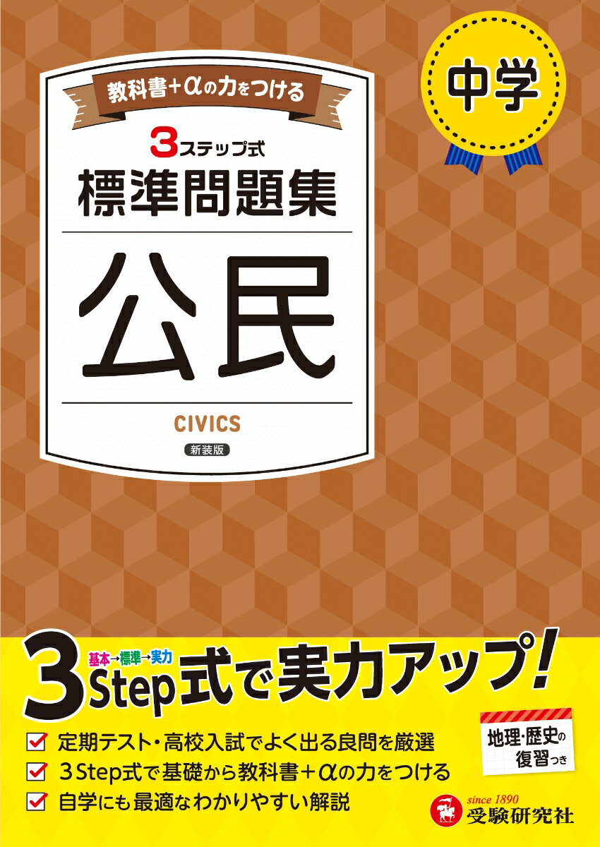 定期テストから入試対策まで、3つのステップで教科書+αの力がつく問題集◆日常学習から入試の基礎固めまで・授業の予習・復習から定期テスト対策、苦手分野の学習にも活用できます。・標準的な入試問題を厳選しているので、入試の基礎固めに最適です。◆ムリなく力をつける、3つのステップStep1……教科書レベルの基本問題・教科書に出てくる基礎をマスターするステップです。・苦手な科目は、このステップから始めましょう!Step2……入試の基礎固めにぴったりな標準問題・標準的な入試レベルの問題で構成しています。・入試の基礎固めができるステップです。 Step3……さらに力をつける実力問題・Step2よりレベルの高い入試問題を掲載。・実力アップのためのステップです。◆巻頭に地理と歴史の復習ができるページを設けています(全16ページ)◆力試しができる「高校入試総仕上げテスト」つき◆くわしい解説で、独学でも理解しやすい別冊解答■「中学 標準問題集 公民」を終えたら、実戦形式の「高校入試 公立高校5科本番模試」で、入試の予行演習をしよう!