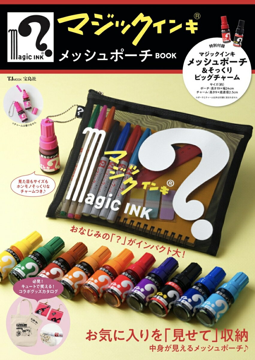 学校で、地域イベントで、誰もが一度は手にしたことのあるマーキングペン代表「マジックインキ」。おなじみの「?」マークがレトロかわいい、1953年に誕生した日本初の油性マーキングペン柄が、かわいいメッシュポーチになって登場! 中が見えるフラットなメッシュ素材のポーチに、マジックインキそっくりのかわいいビッグチャームのセットです。文具やガジェット類、趣味の道具など、お気に入りアイテムをチラ見せさせながら持ち運べます♪【特別付録】マジックインキメッシュポーチ&そっくりビッグチャームサイズ(約)メッシュポーチ:幅24×高さ19cmチャーム:底直径2.5×高さ9cm※メッシュポーチ・チャーム以外は付録に含まれません※「マジック」「マジックインキ」は株式会社内田洋行の登録商標です。特別付録は株式会社内田洋行、寺西化学工業株式会社の認定ライセンシーグッズです。
