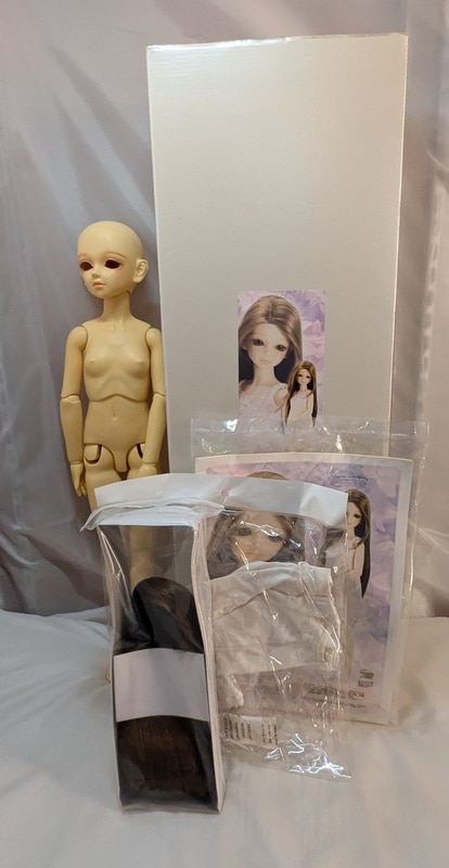 商品状態: 開封使用/ウィッグ未使用/イタミ・スレ・テカリ・黄変あり/まつ毛乱れ/各所に汚れ・色移りあり/画像のもので全て
