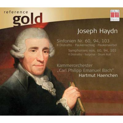 Berlin Classics Reference Gold seriesヘンヒェン/ハイドン:『うっかり者』、『驚愕』、『太鼓連打』【収録情報】ハイドン:・交響曲第60番『うっかり者』・交響曲第94番『驚愕』・交響曲第103番『太鼓連打』 C.P.E.バッハ室内管弦楽団 ハルトムート・ヘンヒェン(指揮) 収録時期:1991年 収録方式:デジタル(セッション)Disc11 : Symphony No. 60 in C Major ('Il Distratto'), H. 1/60: 1. Adagio - Allegro Di Molto2 : Symphony No. 60 in C Major ('Il Distratto'), H. 1/60: 2. Andante3 : Symphony No. 60 in C Major ('Il Distratto'), H. 1/60: 3. Menuetto4 : Symphony No. 60 in C Major ('Il Distratto'), H. 1/60: 4. Presto5 : Symphony No. 60 in C Major ('Il Distratto'), H. 1/60: 5. Adagio (Di Lamentatione)6 : Symphony No. 60 in C Major ('Il Distratto'), H. 1/60: 6. Finale: Prestissimo7 : Symphony No. 94 in G Major ('Surprise'/'The Drumstroke'/'Mit Dem Paukenschlag'), H. 1/94: 1. Adagio - Vivace Assai8 : Symphony No. 94 in G Major ('Surprise'/'The Drumstroke'/'Mit Dem Paukenschlag'), H. 1/94: 2. Andante9 : Symphony No. 94 in G Major ('Surprise'/'The Drumstroke'/'Mit Dem Paukenschlag'), H. 1/94: 3. Menuet: Allegro Molto10 : Symphony No. 94 in G Major ('Surprise'/'The Drumstroke'/'Mit Dem Paukenschlag'), H. 1/94: 4. Finale: Allegro Di Molto11 : Symphony No. 103 in E Flat Major ('Drumroll'), H. 1/103: 1. Adagio - Allegro Con Spirito12 : Symphony No. 103 in E Flat Major ('Drumroll'), H. 1/103: 3. Menuet13 : Symphony No. 103 in E Flat Major ('Drumroll'), H. 1/103: Finale: Allegro Con SpiritoPowered by HMV