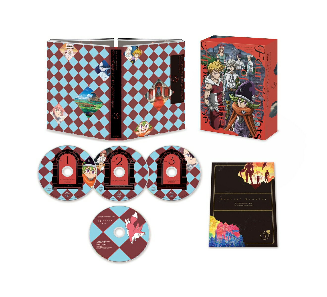 果てなき世界へ 大いなる運命へ 飛び込めー数々の困難を乗り越え、ついに旅の目的地であるリオネス王国へ到着したパーシバル達。リオネス国王で〈七つの大罪〉であるメリオダスから世界で起こっている惨状とアーサーの目的を聞かされたパーシバルは仲間たちと共に打倒アーサーを決意する。そしてついに揃う〈黙示録の四騎士〉たち。しかし、新たな追手と“混沌の王”アーサーが彼らの前に姿を現す!全世界待望の痛快冒険ファンタジー第2章、開幕!<キャスト>パーシバル:小村将ドニー:戸谷菊之介ナシエンス:島田愛野アン:中村カンナシン/ランスロット:内山昂輝イロンシッド:森川智之ペルガルド:小山力也アーサー:國立幸トリスタン:村瀬歩ガウェイン:ファイルーズあいイゾルデ:種崎敦美ジェイド:仲村宗悟キオン:斉藤壮馬メリオダス:梶裕貴ティーニニック:鷄冠井美智子マクダフ:乃村健次イオ:花守ゆみりほか<スタッフ>原作:鈴木央 「黙示録の四騎士」(講談社「週刊少年マガジン」連載)監督:小平麻紀シリーズ構成・脚本:村越繁キャラクターデザイン:高田洋一美術監督:村本奈津江色彩設計:小島真喜子(スタジオ・ロード)撮影監督:野口龍生(T.D.F.)編集:岡崎由美佳(森田編集室)、グッド・ジョブTOKYO音響監督:小泉紀介メインテーマ:澤野弘之/KOHTA YAMAMOTO音楽:KOHTA YAMAMOTOオープニングテーマ:UVERworld「MMH」(Sony Music Labels)エンディングテーマ:Hana Hope「アカイロ」(Sony Music Labels)企画プロデュース:UNLIMITED PRODUCE by TMSアニメーション制作:テレコム・アニメーションフィルム©鈴木央・講談社/「七つの大罪 黙示録の四騎士」製作委員会※収録内容は変更となる場合がございます。
