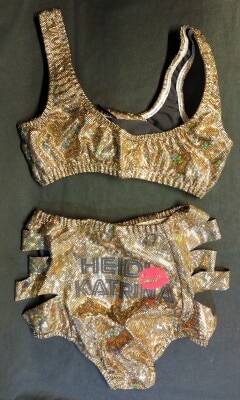 プロレスコスチューム 【ハイジ・カトリーナ コスチューム上下セット(金特殊生地)】タグなし 本人収め用 写真集付き
