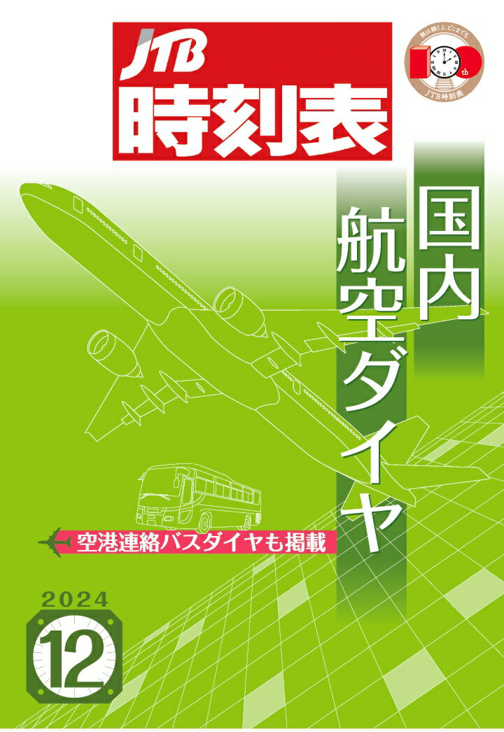 創刊99年の歴史を誇り、2025年4月号をもって100年目を迎える月刊誌『JTB時刻表』。鉄道はもちろん、バス、船舶、航空など、日本全国の交通情報がわかる1冊として多くのお客様に愛されている『JTB時刻表』から登場した、航空ダイヤに特化した月刊誌!ラインナップは『国内航空ダイヤ』・『国際航空ダイヤ』、そしてその2商品の内容がひとつになった『国内・国際航空ダイヤ』の3商品です。<『国内航空ダイヤ』2024年12月号掲載内容> 日本国内発着の旅客便(LCCも含む)を収録しています *空港連絡バス・乗合タクシー情報 *各社予約・案内センター *2025年1月6日までの最新ダイヤ【見どころ】 ■通常期・多客期の各社運賃目安 ■各社使用機種 ■羽田・成田・中部国際・関西空港の航空会社別ターミナル案内 ■特定空港の旅客施設使用料 ※掲載されている情報は2024年10月25日現在のものです。 ※ダイヤや機種は予告なしに変更される場合があります。ご利用の際は航空会社HP等で最新状況をご確認ください。