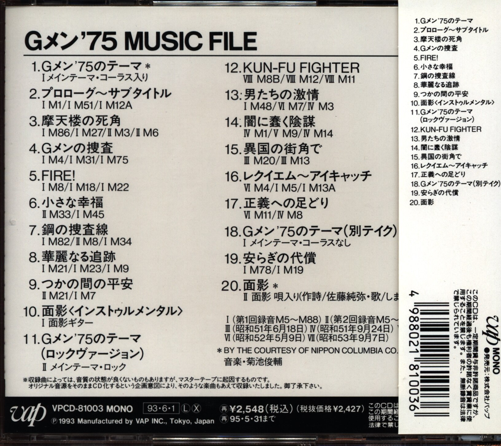 CD / オリジナル・サウンドトラック / Gメン'75&Gメン'82ミュージックファイル