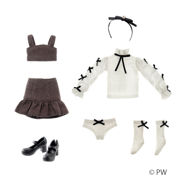 | CCSgirlは、ペットワークスのドールファッションブランドCCSの妹ブランド。ピュアニーモボディXS+ペットワークスオリジナルヘッドドールのrurukoが着こなします。momokoとおそろいにしたり、CCSgirlならではのキュートな子供服を提案していきます。美術館で待ち合わせ。「CCSgirl 24AW ruruko」は、ガーリーなトラッドスタイルのrurukoです。内容:ruruko本体、ビスチェ、リボンいっぱいブラウス、フリルミニスカート、ショーツ、リボンソックス、リボンビジューカチューシャ、ストラップシューズ(STOC)。仕様詳細:髪色:チェリーブラウン ×チェリーピンクミックス瞳色:ライラックグレー(サイドグランス)肌色:ナチュラル肌マスクデザイン:ときのりようこ素体:PW別注ピュアニーモフレクションXS/フル可動ヘッド原型:澤田啓介(澤田工房)衣装製作:関口妙子全高約22cm PVC、ABS樹脂、布製衣装MADE IN JAPAN(ボディは中国製、衣装はベトナム製です)※写真は開発中サンプルのため最終仕様と異なる場合があります。ご了承下さい。※写真はできるだけ現物の色に近いように心がけておりますが、ディスプレイの差などにより若干現物と違う色に見えることもあります。※ドール本体・衣装が別々に入っています。お客様ご自身で衣装を着せ付ける仕様です。※素材の仕様上、ヘッド・ボディにはパーツごとの色ムラや細かい異物・細かい傷があります。不良ではありません。また、生産時期により色の差があります。※手作業でのマスク彩色のため、同一商品でもメイクにズレやブレが発生し、左右非対称です。不良ではありません。※手作業での植毛・ヘアカットのため、同一商品でも多少の違いがあり、左右非対称です。不良ではありません。※衣装・小物等の色が、人形本体に色移りする場合があります。ご注意下さい。※衣装・小物等はデザイン性を重視して繊細な作りになっております。お取り扱いにご注意下さい。※衣装・小物等は手作業で制作のため個体差があります。ご了承下さい。※チュールオーバースカートの着せ付けは、ミニワンピースのウエストリボン裏側のスプリングホックを使用してください。※本体の塗装は強い摩擦で剥げる場合があります。ご注意下さい。※高温になる場所には置かないで下さい。変形のおそれがあります。※小さな部品があります。誤飲の危険がありますので、小さなお子様には絶対に与えないで下さい。※対象年齢15歳以上。 |