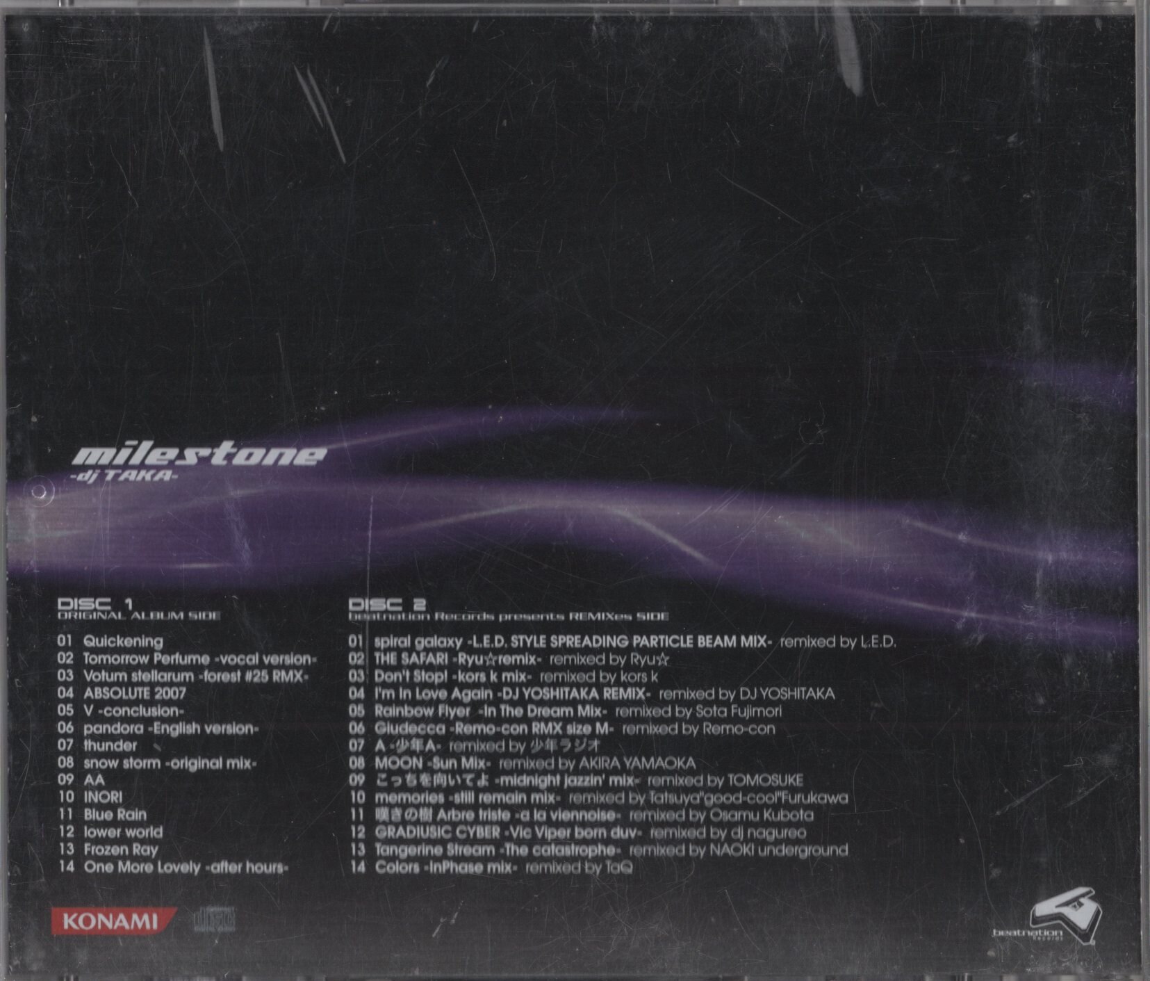 milestone/dj TAKA 2CD コナミスタイル L.E.D. Ryu☆ kors k YOSHITAKA Sota Fujimori Remo-con nagureo NAOKI TaQ Osamu Kubota TOMOSUKE