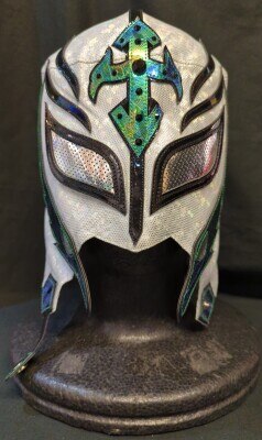 プロレスマスク【レイ・ミステリオJr (白×銀ホロ・黒フチ)】セミプロタイプ タグなし