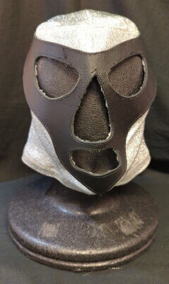プロレスマスク 【スーパーストロングマシン/ザ・コブラ ハーフタイプ(銀ラメ・黒ラメ×黒・金・銀フチ)】 タグなし