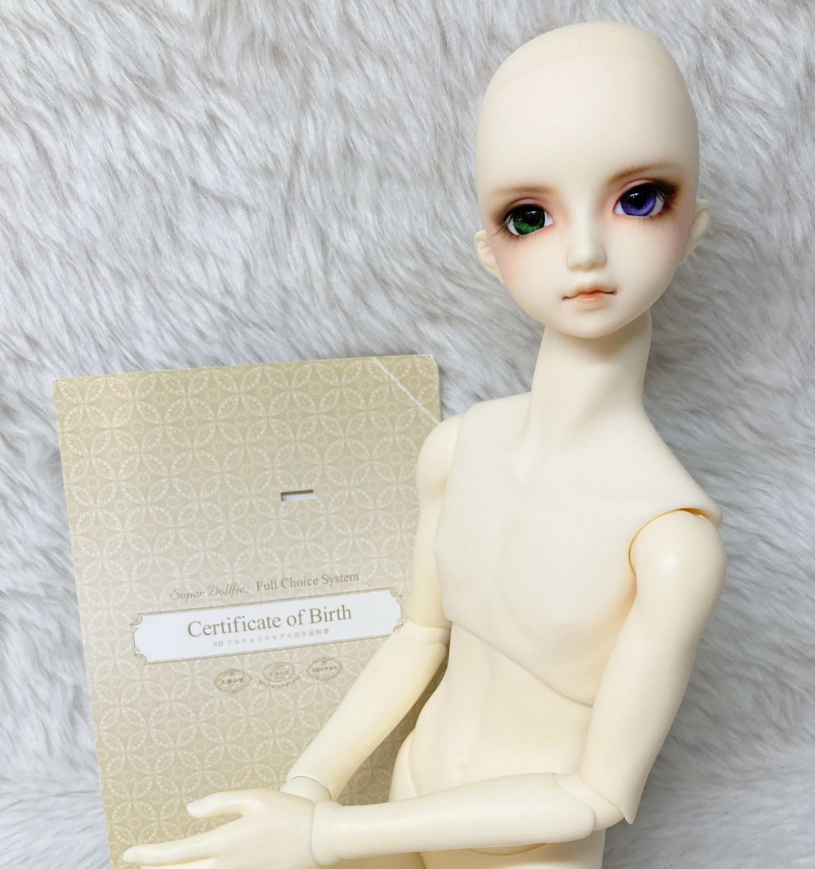 商品状態: 本体、出生証明書のみ / 黄変 / 眉、こめかみ付近にてかり / 全体的に汚れ多め / 擦れ、てかり / 画像の物が全てです