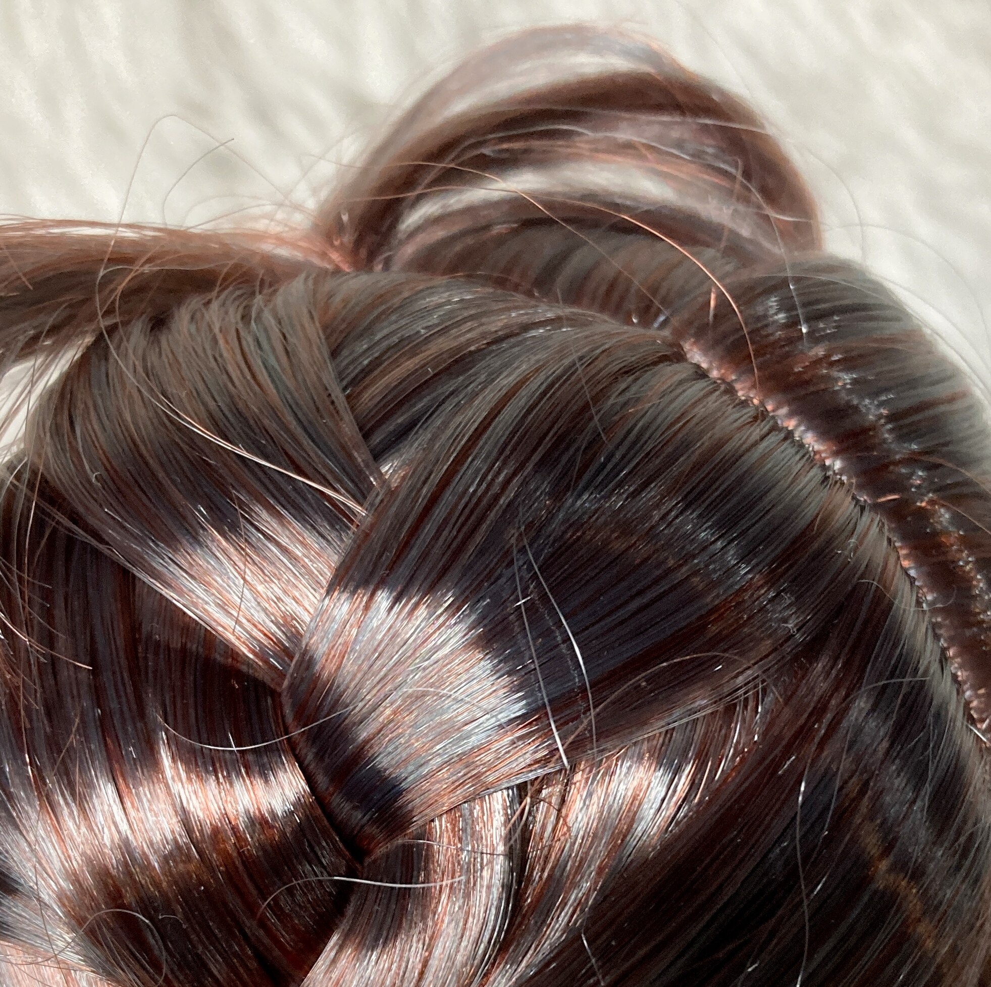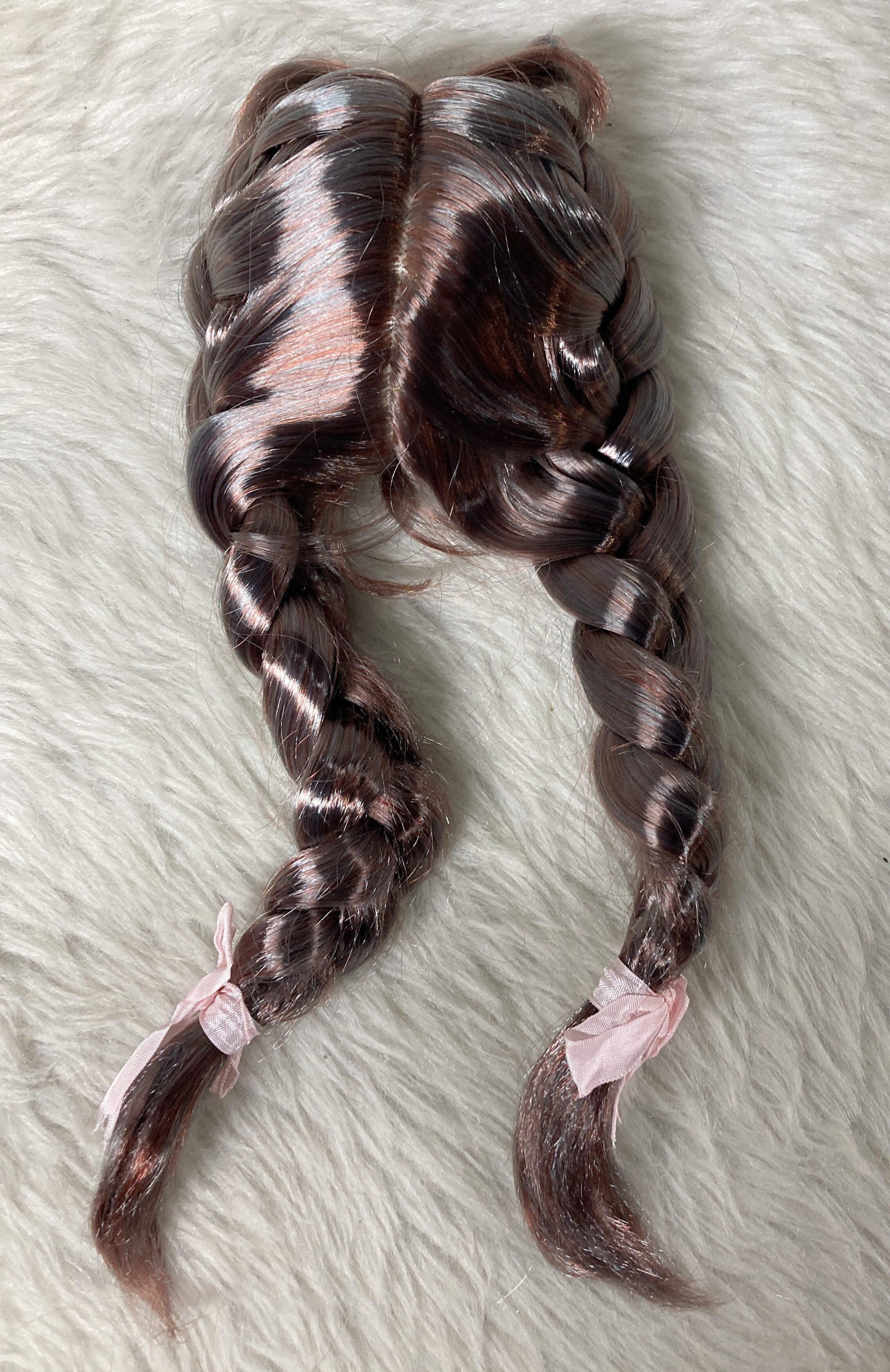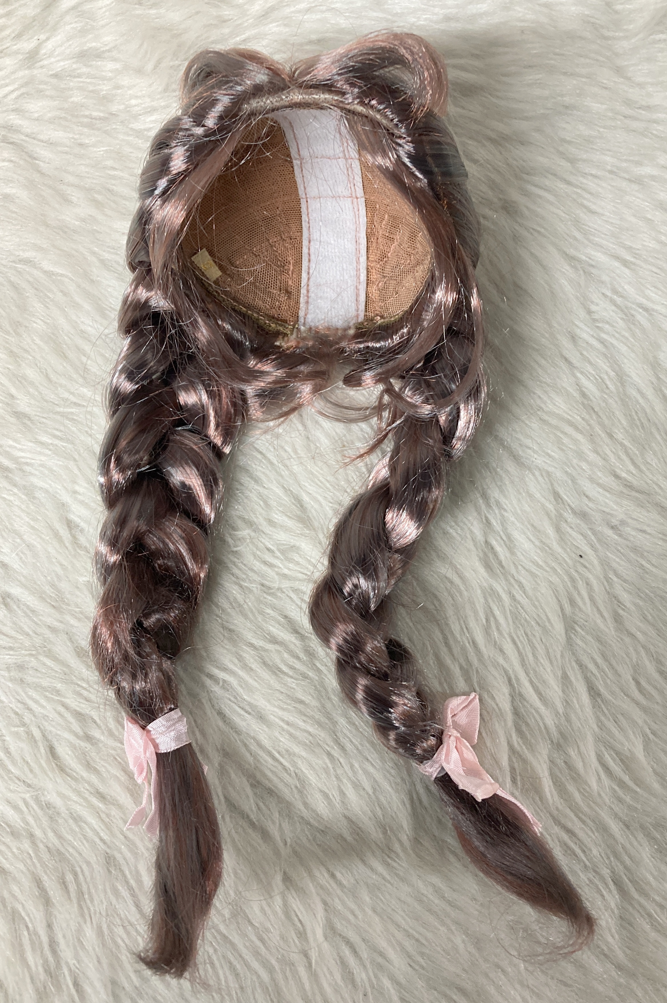 ふにゃほわ ドールウィッグ SD DDサイズ 三つ編みアレンジロングストレートヘア リボン付 ダークグレー