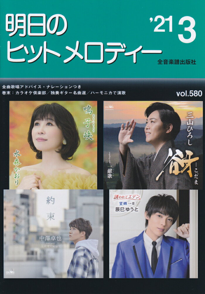 演歌・歌謡曲の最新曲をいち早く集めたカラオケファンのための最新曲集です。全曲に前・間・後奏、オブリガート、テンポ表示、リズム型、冒頭ナレーションと歌唱アドバイスまで入った完璧な楽譜になっています。巻末には楽譜が読めなくてもタブ譜でヒット曲が弾ける『独奏ギター名曲選』とハーモニカの独奏で演歌を楽しめる『ハーモニカで演歌』、分かりやすくて丁寧な指導で新曲が唄える『カラオケ倶楽部』といった色々なコーナーを収録。音楽マメ知識付きです。【新曲】哀愁夜曲/サイリン、居酒屋「昭和」/八代亜紀、笑顔の花/古都清乃、恋待ち化粧/若原りょう、谺─こだま/三山ひろし、残波/天童よしみ、人生の贈りもの/北原ミレイ、約束/中澤卓也、酔わせて候/山崎ていじ、別れの彼方/増位山太志郎、誘われてエデン/辰巳ゆうと、鳴子峡/水森かおり、東日本大震災/Yukari、東京シネマ/沢井 明【B面コーナー】越後平野/福田こうへい、雨の堂島川/岩本公水、菜の花しぐれ/小桜舞子、バラの傷あと/松尾雄史【特集:演歌 夢の競演】母ちゃんの浜唄/市川由紀乃、はぐれ花/福田こうへい、麦畑/市川由紀乃&福田こうへい【独奏ギター名曲選】酒しずく/三丘翔太【ハーモニカで演歌】松竹梅/水雲ーMIZMO-【カラオケ倶楽部】命 道づれ/秋岡秀治、お帰りなさい/小桜舞子、男富士/鏡 五郎、かんべんナ/福田こうへい、流れ舟/松尾雄史、望郷歌/岡ゆう子