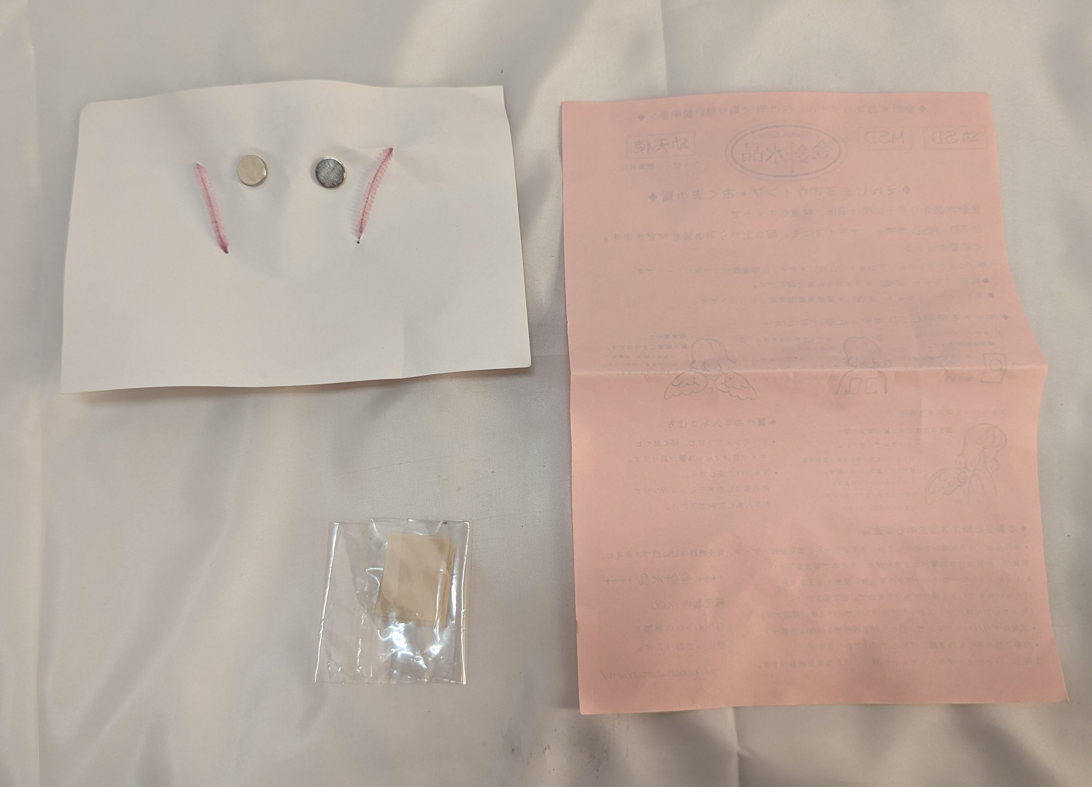 - 経年劣化や郵送中の振動で付属品を留めている紐が切れたりテープが剥がれたりして、付属品が台紙から外れている場合がございます