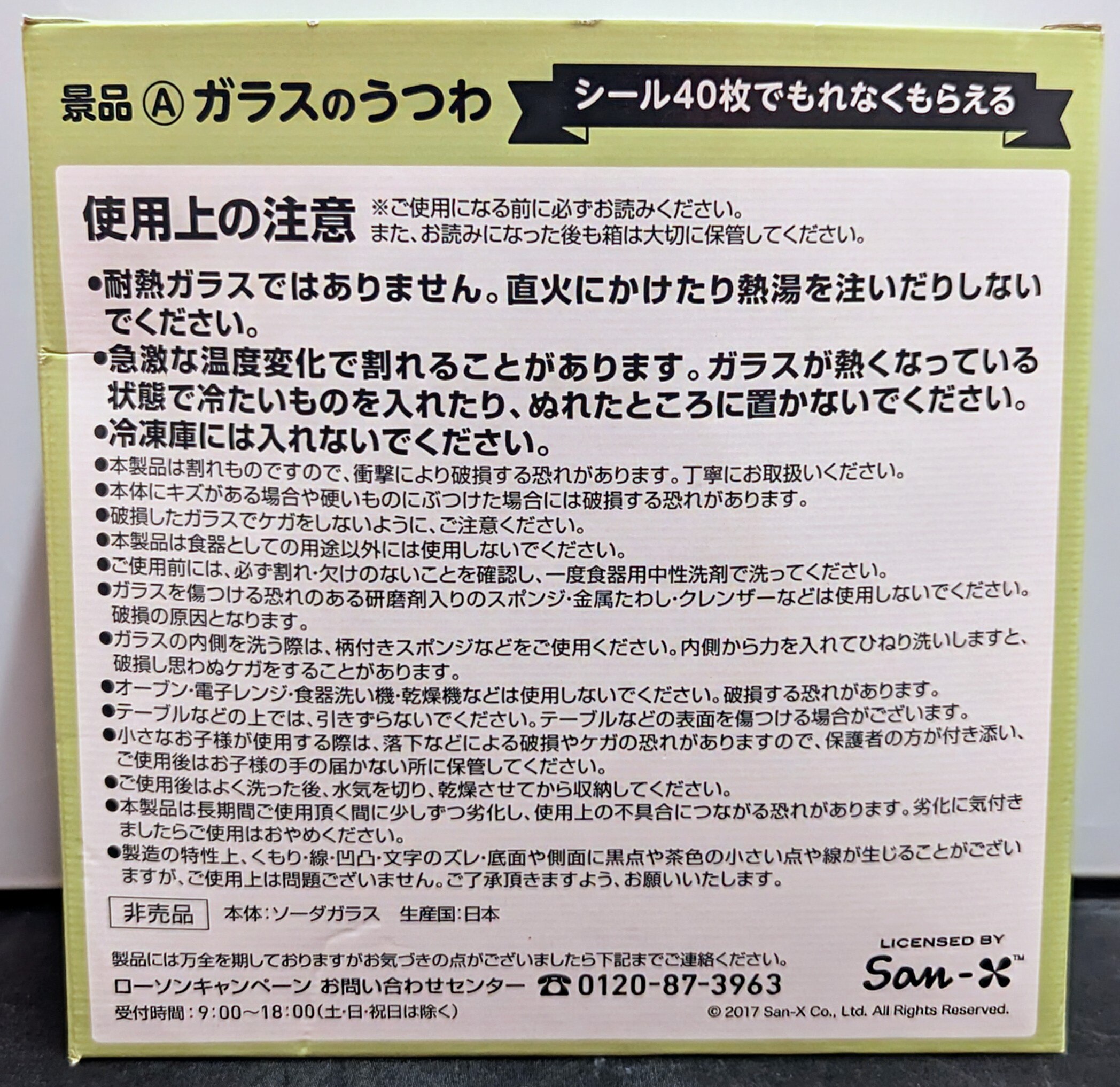 サンエックス ローソンキャンペーン2017 ガラスのうつわ シール40枚でもれなくもらえる