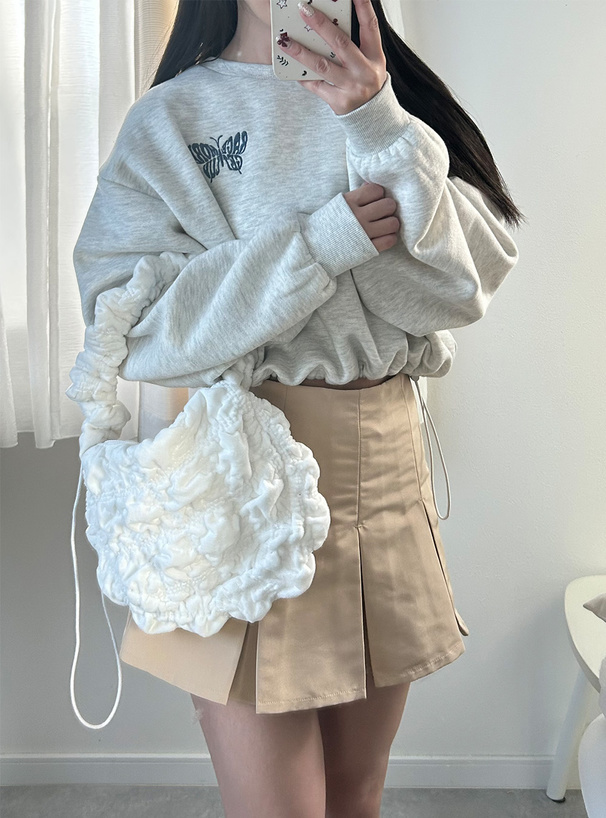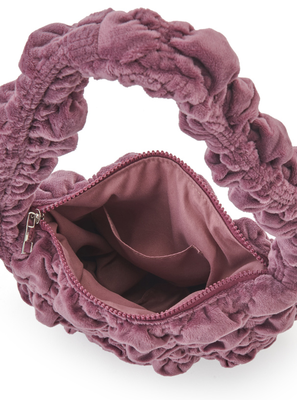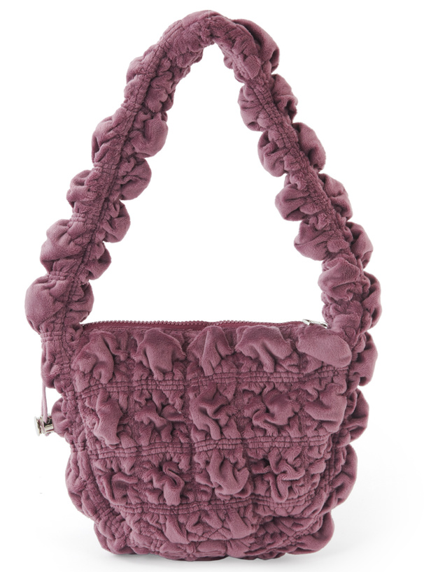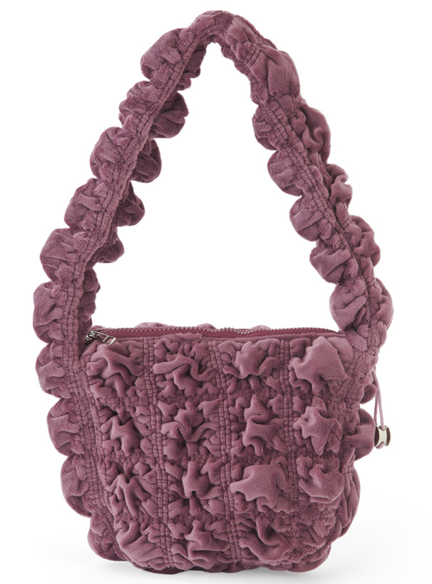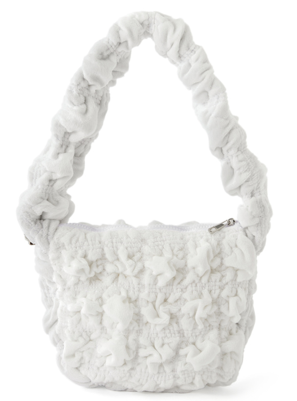 トレンドのギャザーハンドルと立体感のあるシャーリングが特徴のバッグ。