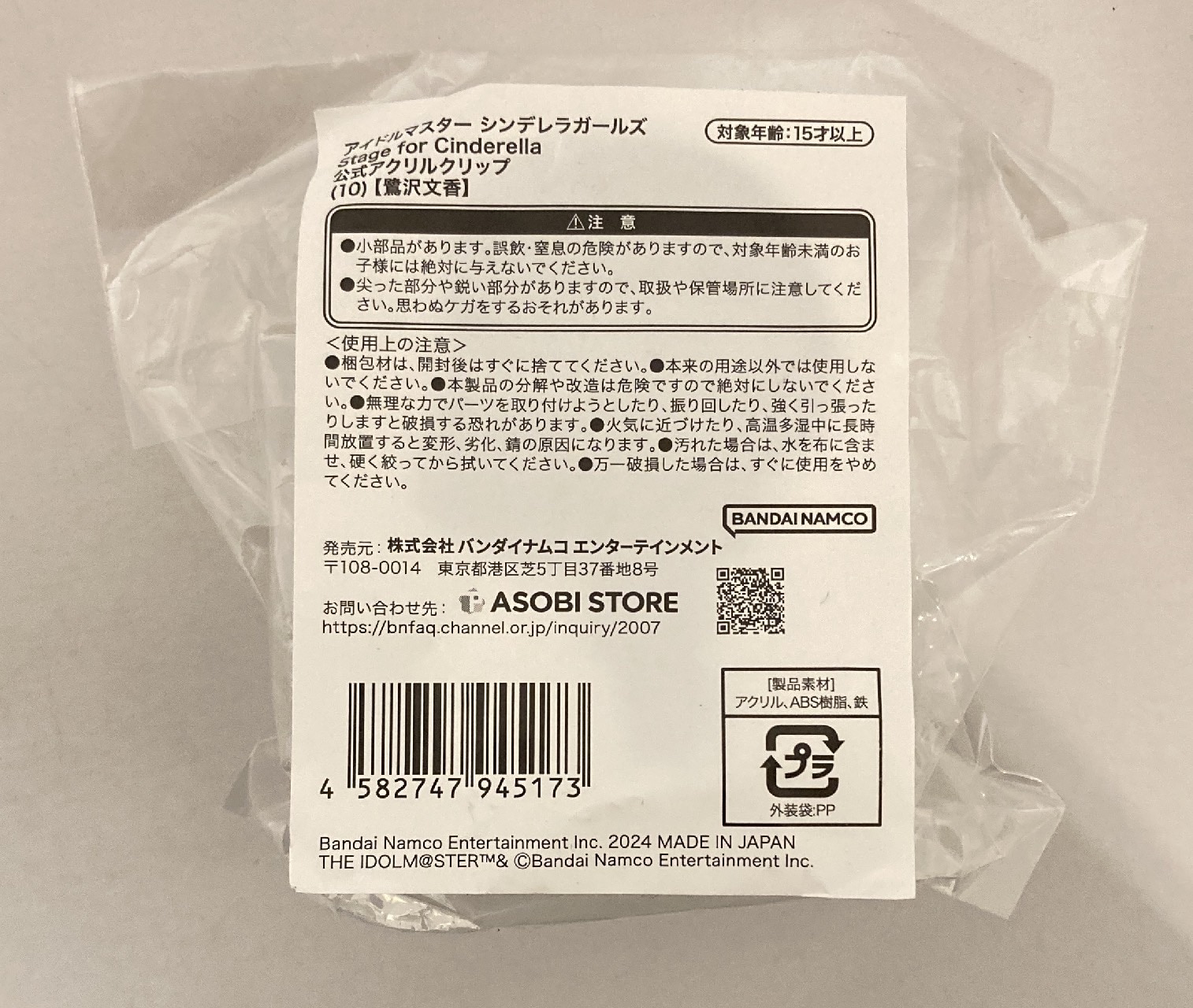 バンダイナムコエンターテインメント 公式アクリルクリップ アイドルマスター シンデレラガールズ 16 久川颯 Stage of Ciderella