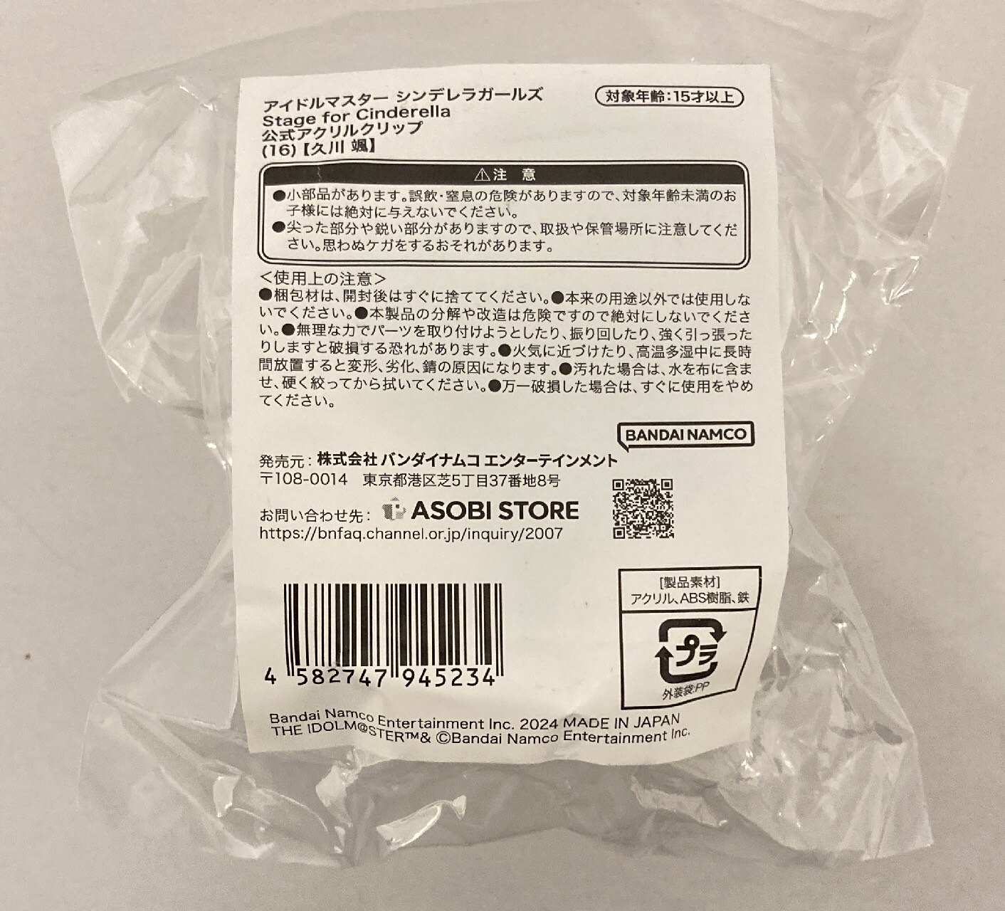 バンダイナムコエンターテインメント 公式アクリルクリップ アイドルマスター シンデレラガールズ 1 久川凪 Stage of Ciderella