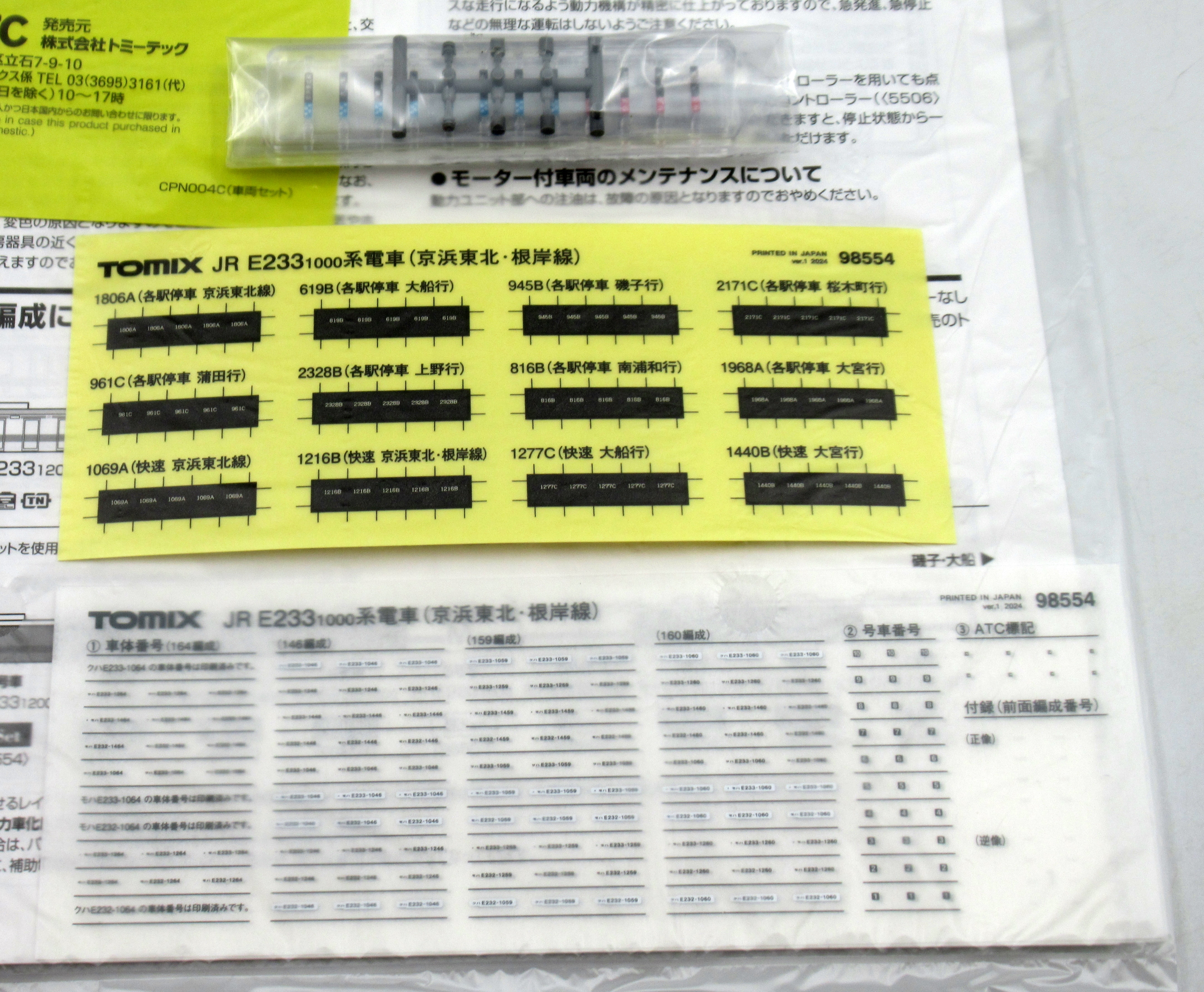 送料無料 新品 ばらし TOMIX トミックス 97615 国鉄 103系通勤電車(高運転台ATC車・ウグイス)基本セット より インレタ 説明書