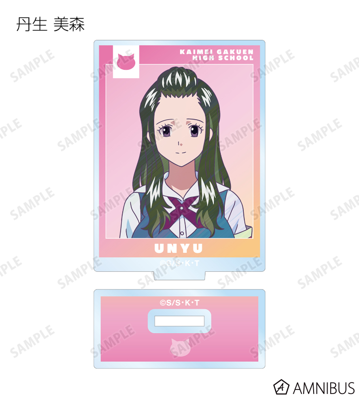 ボッスン、ヒメコ、スイッチ、安形 惣司郎、椿 佐介、丹生 美森、榛葉 道流、浅雛 菊乃のイラストを新たなタッチで魅力的に表現し、キャラカラーのグラデーションが綺麗なアクリルスタンドに仕上げました。