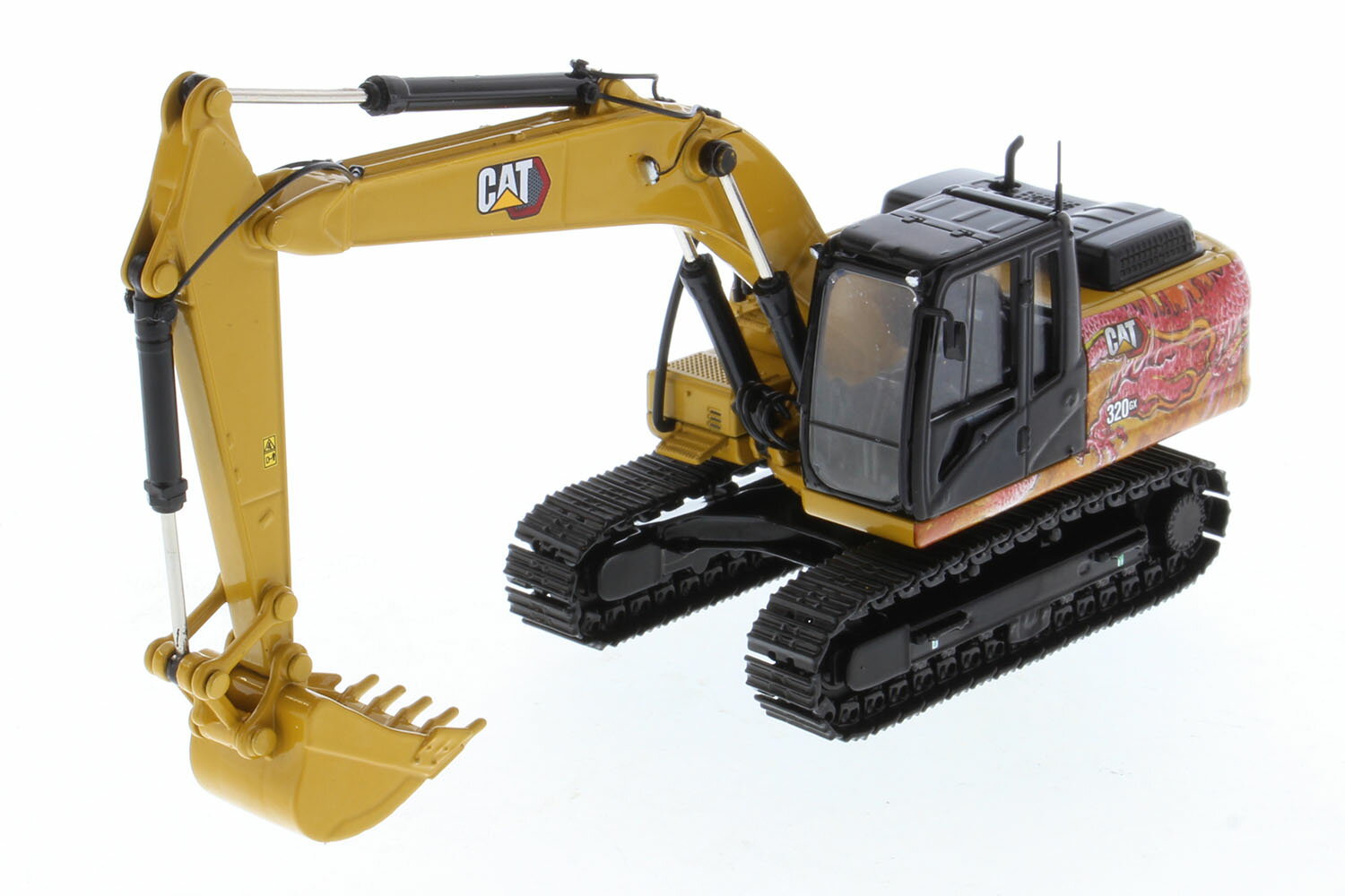 ●車体に描かれたドラゴンのイラストが特別な1台!!実車について日本でも数々の建設機械を販売し、高い評価を集めているキャタピラー社が各種ラインアップする油圧ショベルのひとつがCAT320GXです。キャタピラー社がラインアップする油圧ショベルの中でも中型のクラスです。それまでの320CGタイプよりも燃費が向上したほか、メインテナンスコストの削減も実現しています。エンジンはC4.4ACERT直列4気筒4.4リッターディーゼルエンジンにシングルターボを搭載。145馬力を発生し、加えて高い燃費性能を実現しています。シンプルな機能に高いパフォーマンスを持つ経済性の高さが人気を集め、世界で幅広く使用されているのです。モデルについてキャタピラー社がラインアップする中型のショベルカー、CAT320GX油圧ショベルを1/50スケールで再現した塗装組み立て済みのダイキャスト完成モデルです。このモデルは車体にドラゴンのイラストを描いた特別仕様で金属缶の絵柄にも特別な雲が描かれ、コレクションに見逃せません。履帯を装備する頑丈な車体下部はフレーム形状なども再現。そして、シリンダーパーツなども再現されたアーム類やバケットは力強さにあふれたメカニカルな仕上がり。車体上部ボディの旋回はもちろん、アームやシリンダー、バケットも可動。加えて、運転席は内部もしっかりとモデル化。内部にはオペレーターのフィギュアもセットされます。ドライバーフィギュアとの比較で車両のサイズも実感できることでしょう。車体のカラーはキャタピラー社のイエローをベースに龍のイラストを描いたカラーリングです。また、キャタピラー社のロゴマークなどもしっかりと再現されています。●1/50スケールでキャタピラー社の油圧ショベル、CAT320GXを再現●塗装組み立て済みのダイキャストモデル完成品●車体にドラゴンのイラストが描かれたスペシャルカラー仕様●油圧ショベルのアームやバケットなど各部は可動が楽しめます●コレクションが楽しい金属缶ケース入りで雲のイラストが描かれた特別仕様・ホビー系商品についての諸注意メーカー都合により発売の大幅な延期が発生する可能性がございます。予約商品についてはメーカーから順次入荷次第の発送となります。メーカー公表の発売日とは異なる場合がございますのでご了承ください。【対象年齢】: