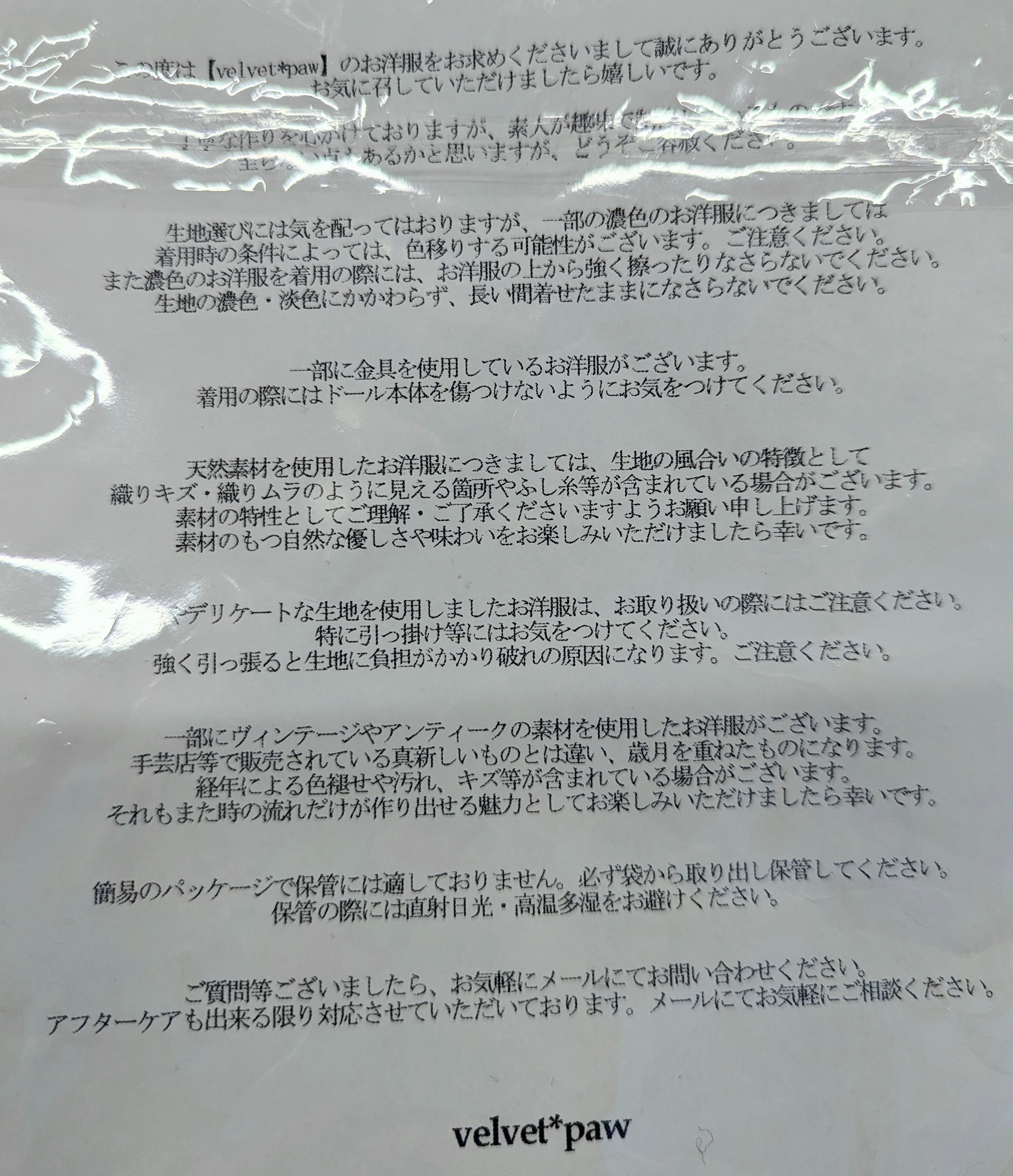 - 布製品(バッグ、タペストリー、ハンカチ等)は保管の際や発送の際に折りたたんでいる場合があり、折れ跡が付いてしまっている可能性があります