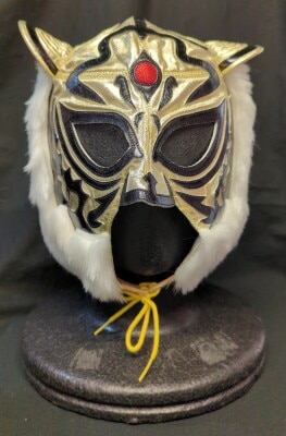 プロレスマスク 【2代目タイガーマスク (金ラメx黒フチ)】タグなし サイン入り