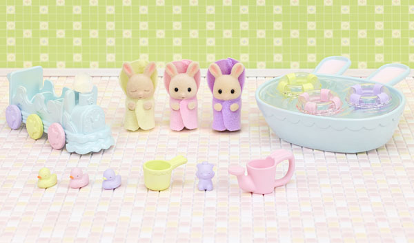 シルバニアファミリー みるくウサギのみつごちゃんだいすきおふろセット
