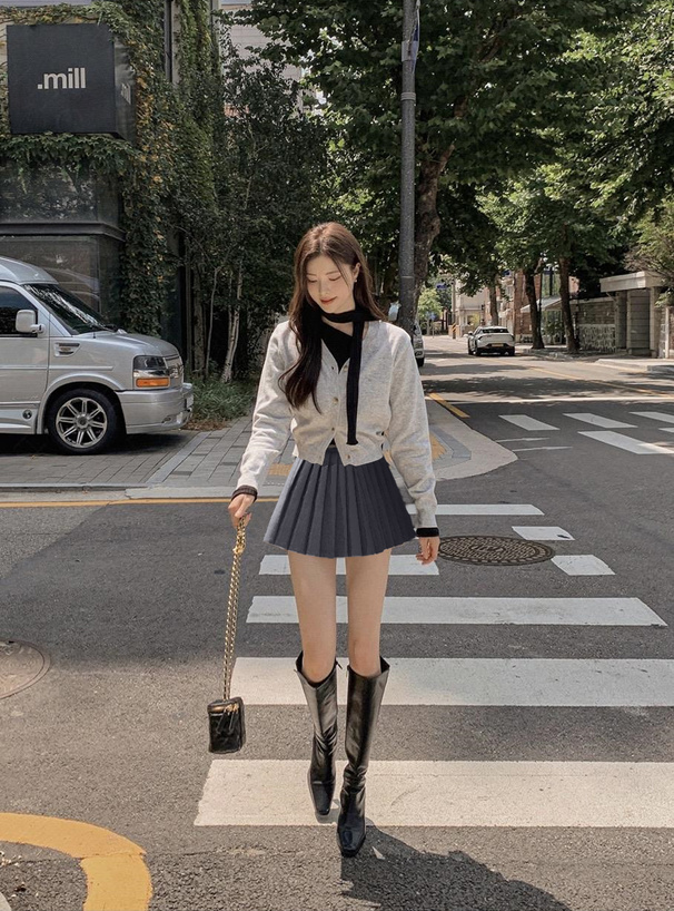 インパン裏地付きツイードプリーツミニスカート[ai225]