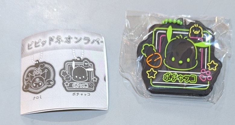 ガチャガチャ サンリオ ポムポムプリン マフィン ビビッドネオン看板 ラバーキーホルダーマスコットチェーン ブラック色 ラバキー