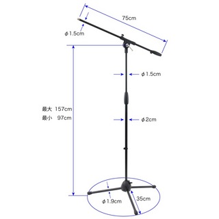 高さ調整幅:約97~157cm ※設置面からブームT字部分までの高さ