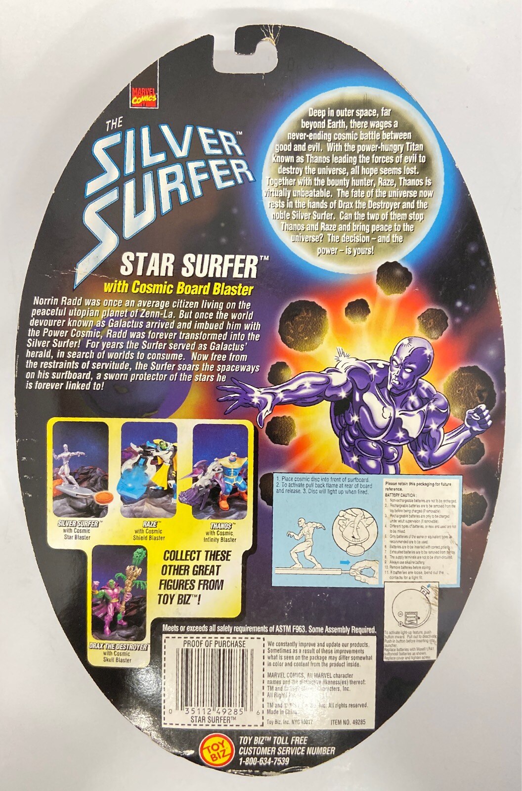 TOYBIZ COSMIC THE SILVER SURFER POWER BLASTERS SILVER SURFER / WITH LIGHT UP COSMIC STAR BLASTER