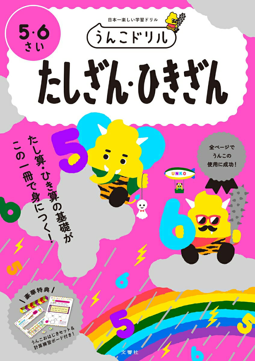 ★☆★累計発行部数 1000万部突破!★☆★ 社会現象になった「うんこドリル」シリーズ!大人気、幼児うんこドリルシリーズに「たしざん・ひきざん」が登場!小学校で学習する「たし算」「ひき算」の基礎を、楽しく身に付けることができます!繰り返し学習で飽きがちな計算問題も、うんこの力で最後まで楽しく取り組めます!1全問が楽しいうんこ問題全ページうんこを使った問題で,子どもの興味・関心を引きつけ,主体性のある学習が期待できる1冊です。繰り返しが多く,飽きやすい計算学習も,うんこで主体的に楽しく最後まで取り組むことができます。2計算の基礎から応用まで学べる!数字の読み書きはもちろん,合成や分解など計算の基礎となる考え方から,立式の方法、繰り上がり・繰り下がりのあるたし算・ひき算まで,基礎・実践・応用を段階的に無理なく学習できます。たし算・ひき算を満遍なく短時間で学習できるのも、この本の魅力です。3繰り返し計算で、しっかり身に付く!計算力を身につけるには,繰り返し問題を解くことが何よりも大切です。計算練習を多く設けているこのドリルなら,覚えたてのたし算・ひき算をしっかり定着させることができます。付録には「うんこおはじきセット」や「うんこけいさんカード」を収録。楽しみながらトレーニングを行い,計算に慣れることができます。