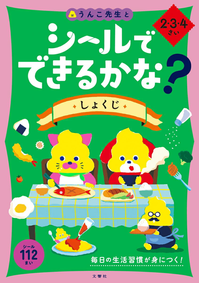◇◆◇「うんこドリル」にシールで生活習慣を身につけるシリーズが登場!◇◆◇お子さまに身につけてもらいたい「食事」がテーマの知育シールブックです!毎日の生活の中でしっかり覚えてもらいたい食事の習慣を、うんこ先生やうんこキャラクターと共にシールで楽しく学んでいきます。《「シールでできるかな? しょくじ 2・3・4さい」の特長》1.えんぴつ不要! シールだけで学べるお子さまが大好きなシールが全部で112枚! いつでもどこでもシールだけで手軽に取り組むことができます。作業ページと同じ場所にシールがあり、すぐ貼れる構成になっています。2.社会生活で大切な食事の習慣が身につく本冊では、日常生活を送るうえで大切にしたい食事のシーンを扱っています。シールを貼って楽しく疑似的に学ぶことで、お子さまの実際の場面で役立てることができます。3.絵本のような楽しいストーリー仕立て一冊を通して、かわいいキャラクターたちが食事の準備から片付けまでを行うお話でつながっているので、飽きずに取り組めます。最後までやりきると、達成感を味わうことができます。