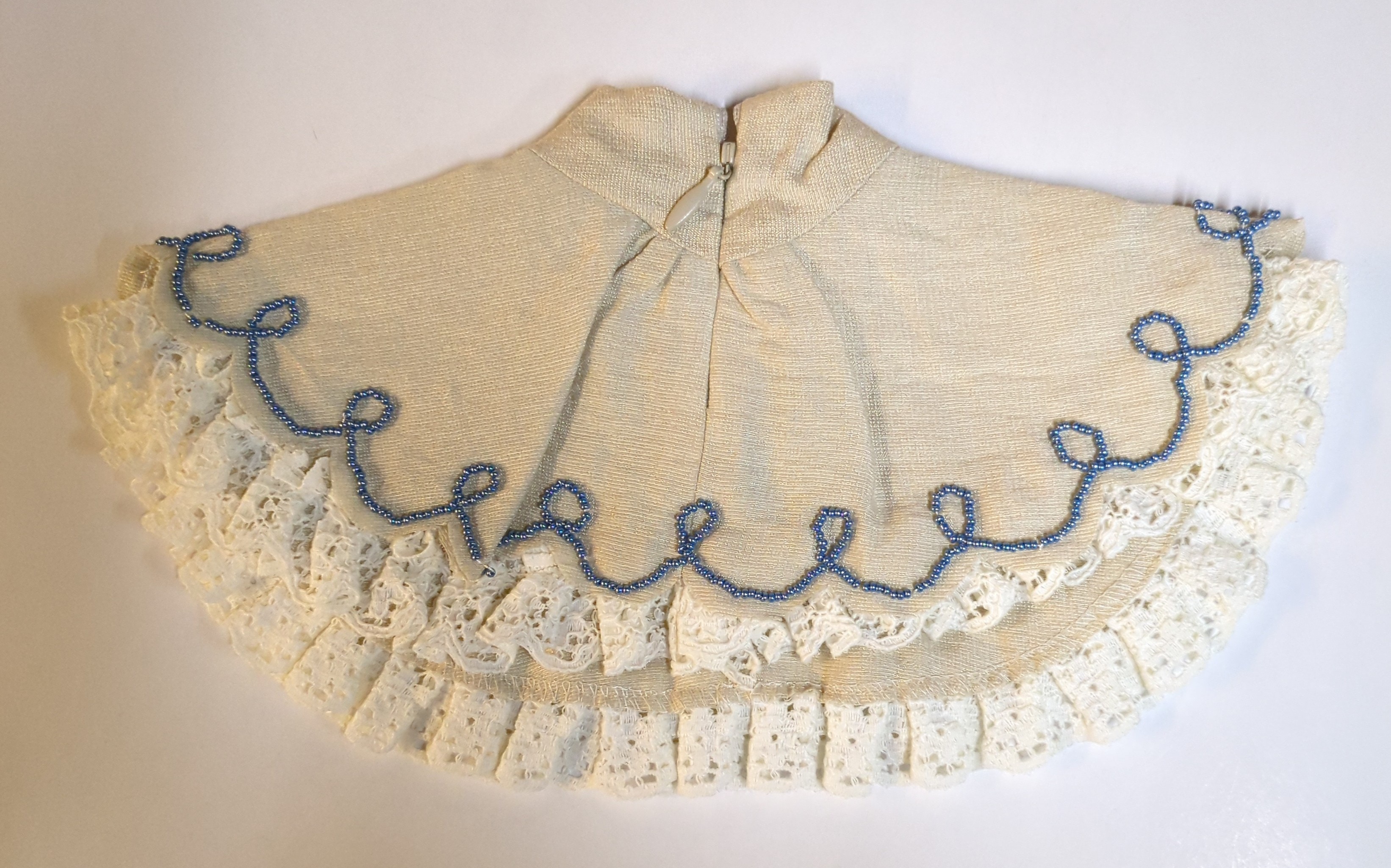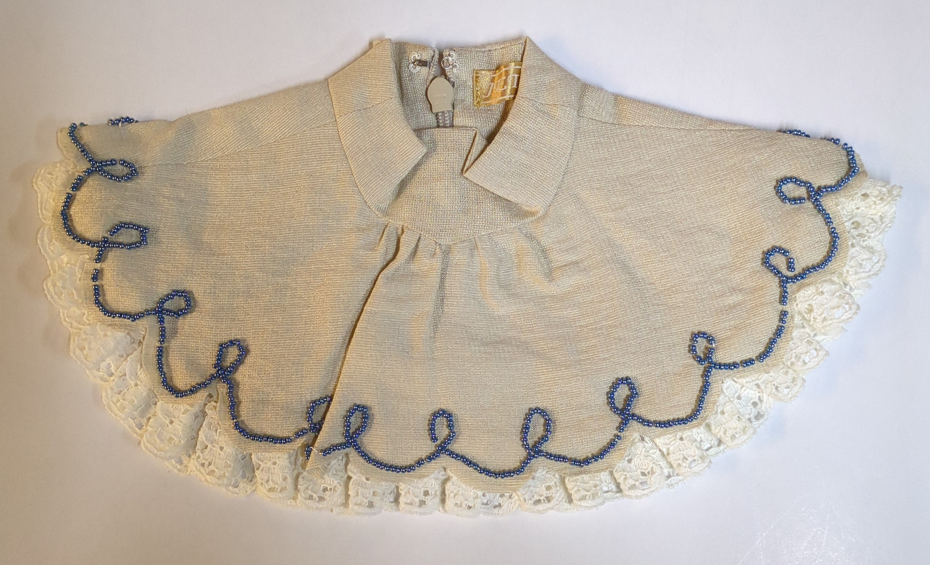 #000000 ドール衣装 ワンピース 白×水色 裾にビーズ