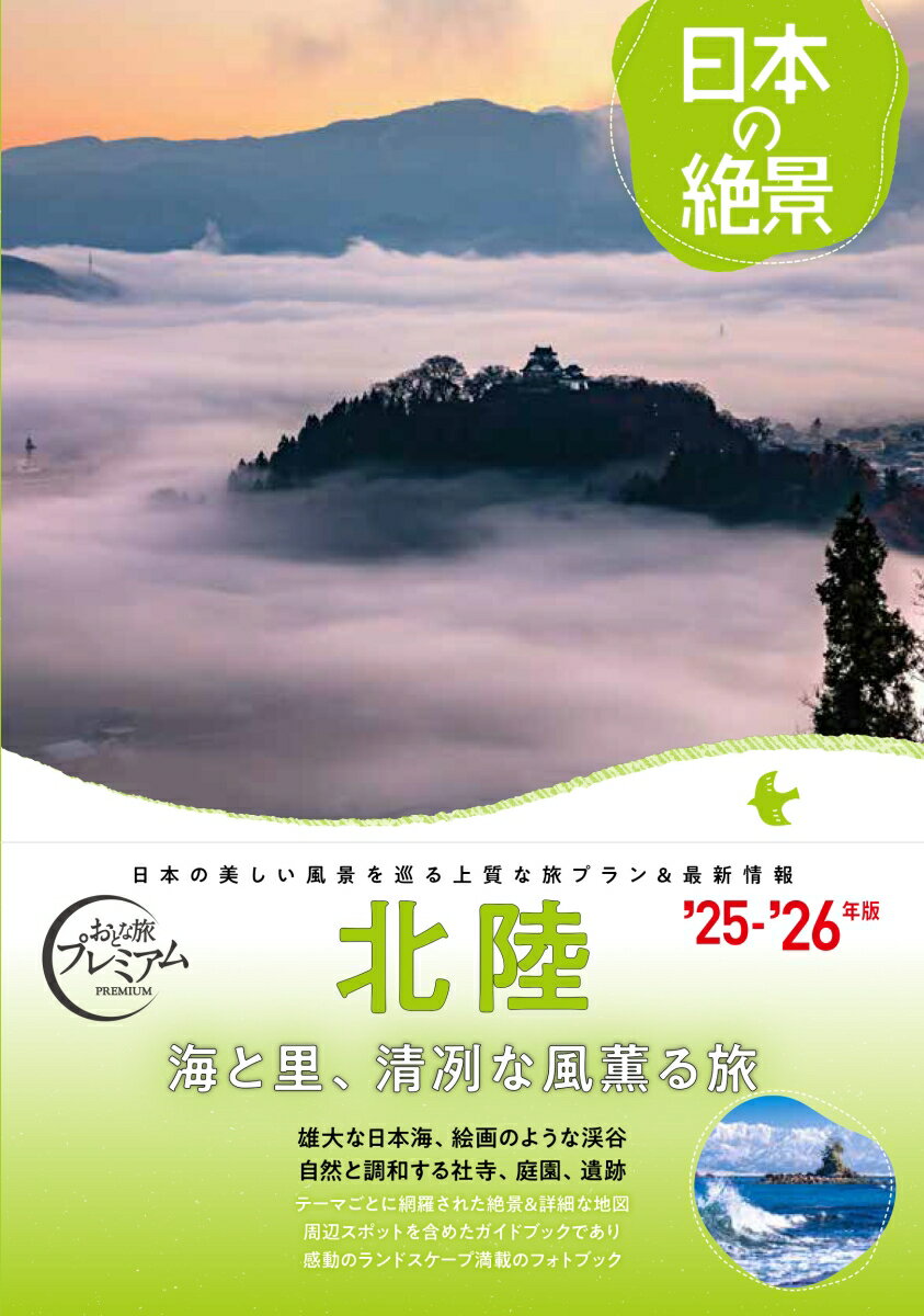 海と里、清冽な風薫る旅雄大な日本海、絵画のような渓谷自然と調和する社寺、庭園、遺跡特集1の「雄大豪壮な日本海」は、東尋坊、珠洲岬、音海大断崖、笹川流れ、ヤセの断崖、千里浜なぎさドライブ、雨晴海岸、加佐の岬、角田岬灯台、水島、能登島が掲載。特集2の「四季を彩る花景」は、水の公園 福島潟、あさひ舟川 春の四重奏、ゆりの里公園、砺波チューリップ公園、西山公園、乾側地区のシバザクラ、松が峯の桜、津南ひまわり広場、越前海岸、黒部川堤防桜堤。続いては美しい景色をテーマごとに網羅。「絵画のような渓谷・峡谷」は黒部峡谷、神通峡、苗名滝、津峡渓谷、鶴仙渓、庄川峡、千巌渓、足羽川渓谷。「幻想的な棚田・雲海」は越前大野城、枝折峠、白米千枚田、星峠の棚田。「美と趣の社寺・庭園」は大本山 永平寺、兼六園、那谷寺、平泉寺、白山神社。「風景と調和する美しい橋」は九頭竜湖 夢のかけ橋、新湊大橋、萬代橋。「集落・遺跡ノスタルジア」は五箇山菅沼合掌造り集落、一乗谷朝倉氏遺跡、荻ノ島かやぶきの里、真脇遺跡。「パノラマ景色を独り占め」は三方五湖、散居村展望広場、獅子吼高原、呉羽山展望台。「金銀山400年の歴史を刻む」ではトキが舞う美の宝庫・佐渡島、「世界屈指の山岳ルート」では息もつかせぬ勝景の連続である立山黒部アルペンルートも取り上げ、「夜桜に染まる城跡」「姿を変えるブナ林の1年」「標高 2400m超の天空の社」「美しい水辺の公園」「農村に残る伝統のはさ木」「長岡の空を彩る大花火」といった読み物・コラムも。