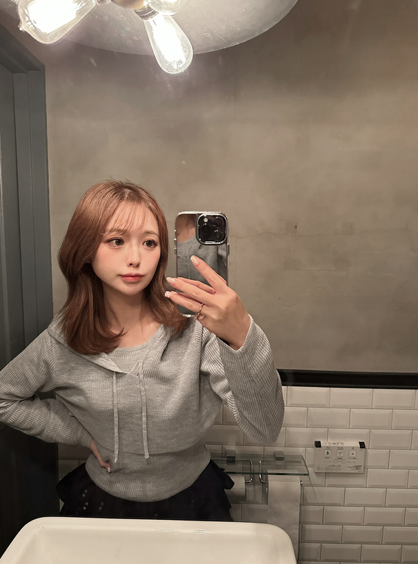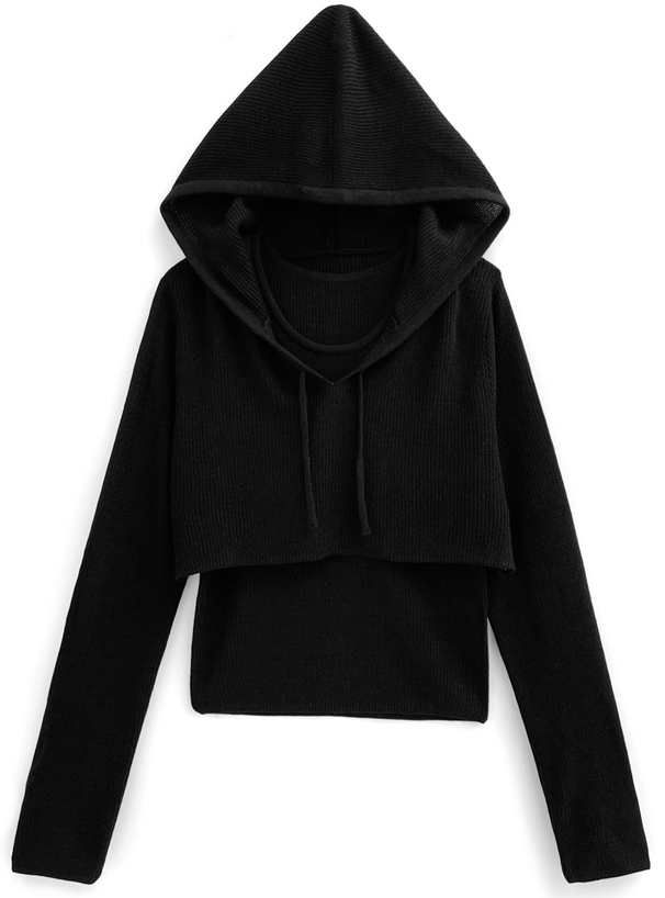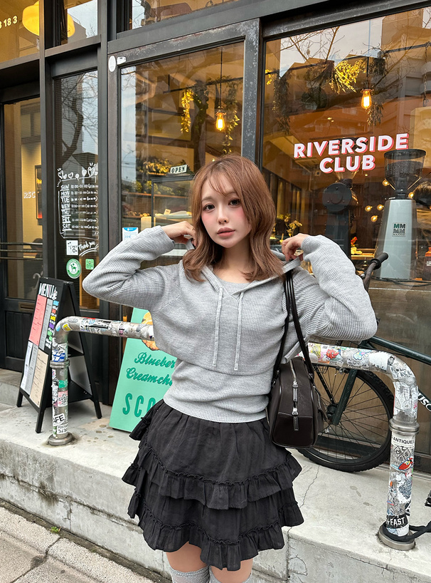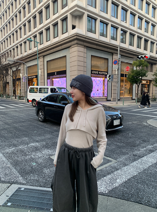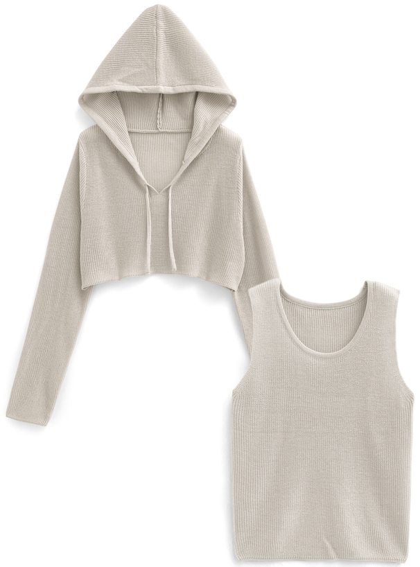 リラックス感溢れるフード付きニットトップスと、タンクトップのセットアイテム。