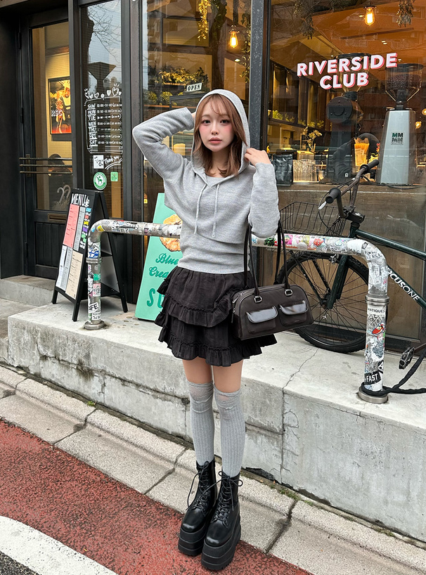 クロップド丈のトップスはトレンド感を生み出し、レイヤードアレンジを楽しめる仕上がり。