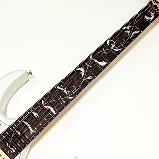 JEMでトレード・マークだったツリー・オブ・ライフ・インレイは言うに及ばず、スティーヴ自身のアートにしばしば挙がる流麗で美しいボタニカルなデザイン・イメージを、PIA専用にデザインした新たなインレイです。