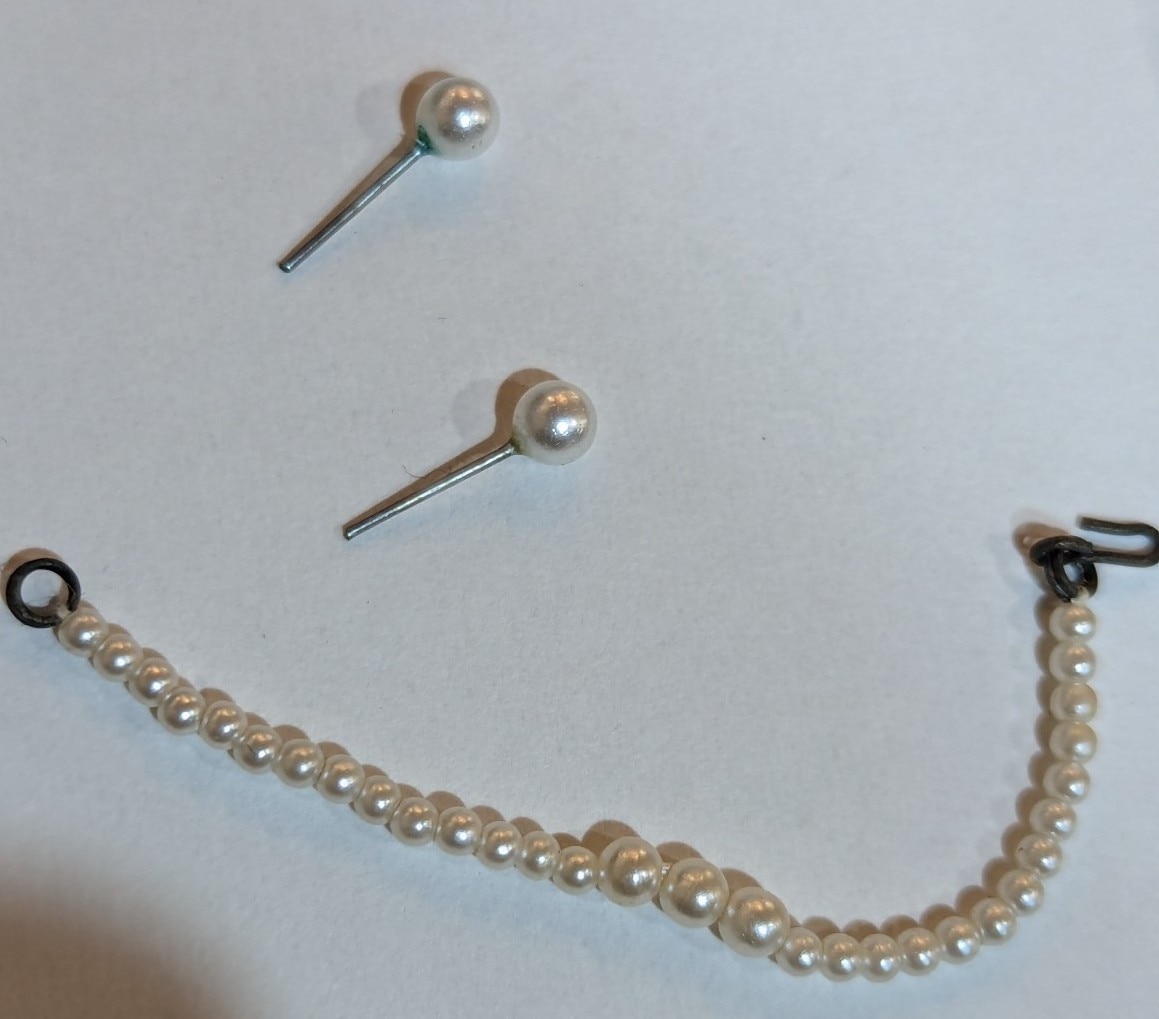 商品状態: ハンカチ・靴・ピアス欠/裏地に汚れ(錆びの汚れ?)/ピアスは別物おまけ