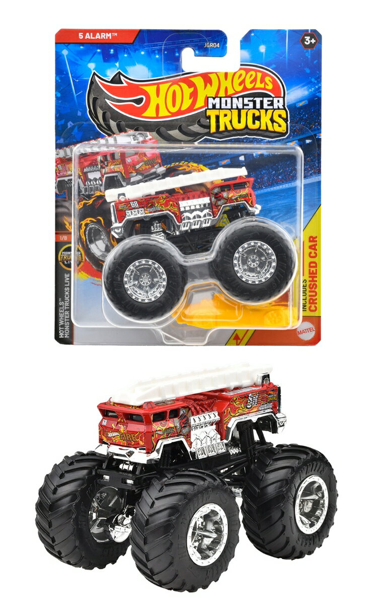 【内容】モンスタートラックのアニメに登場する「ファイブ・アラーム」が1/64サイズの単品で登場!モンスタートラックでクラッシュできる車1台付き。【原産国】タイ 【対象年齢】3才〜【Brandについて】カリフォルニア生まれ 1秒間に16台売れているミニカー。【ホットウィール】Hot Wheels=「かっこいい車!」独特な南カルフォルニア風の外観、高速に動くホイール、(当時の最新技術!)そして 赤いラインの入ったタイヤ。現在、世界で一番売れているミニカーです*。*Circana/Retail Tracking Service/G12/JAN-DEC 2023/Total Toys/Projected Units【プレゼントに最適】お誕生日、クリスマスプレゼント、入園・入学祝いなど記念日でのプレゼントにぴったりです。【対象年齢】:3歳以上【商品サイズ (cm)】(幅×高さ×奥行):14×16.5×6.7
