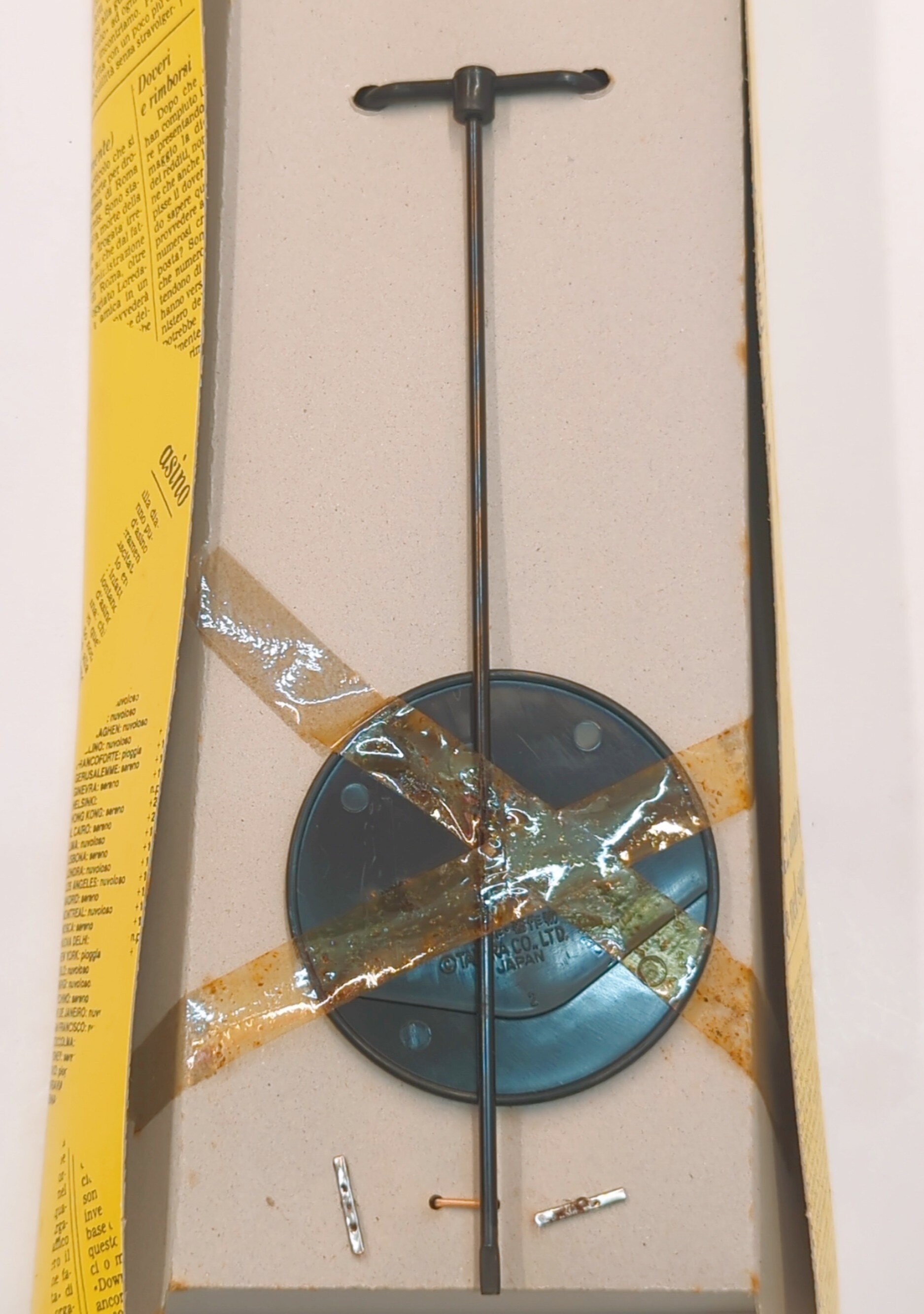 メーカーによる検品のため開封され再びテープ留めされたもの。中は未使用