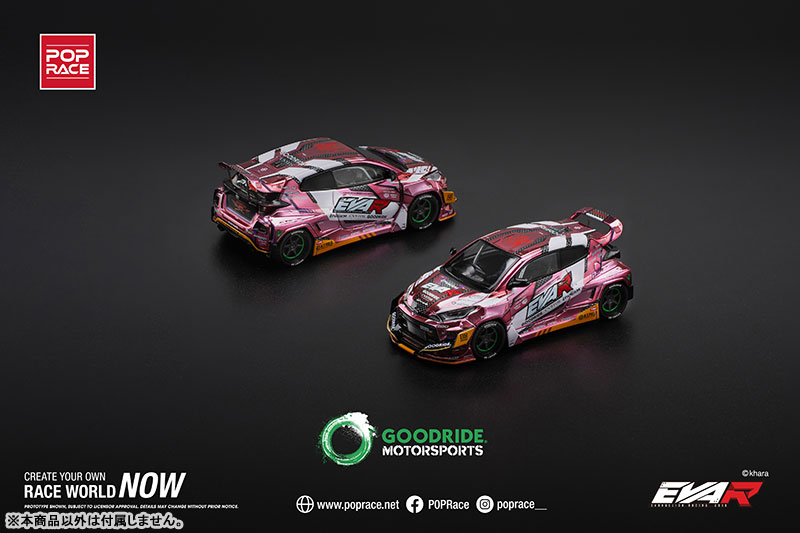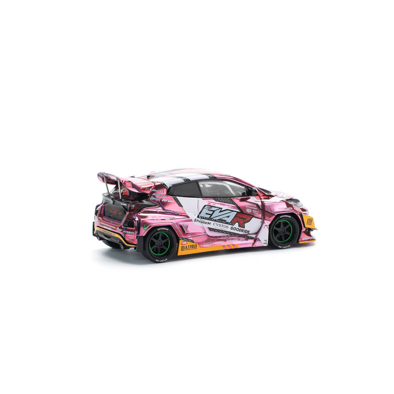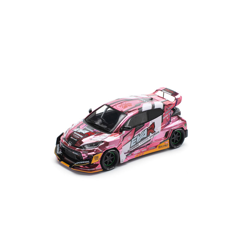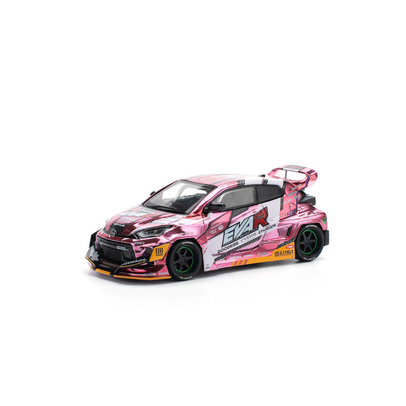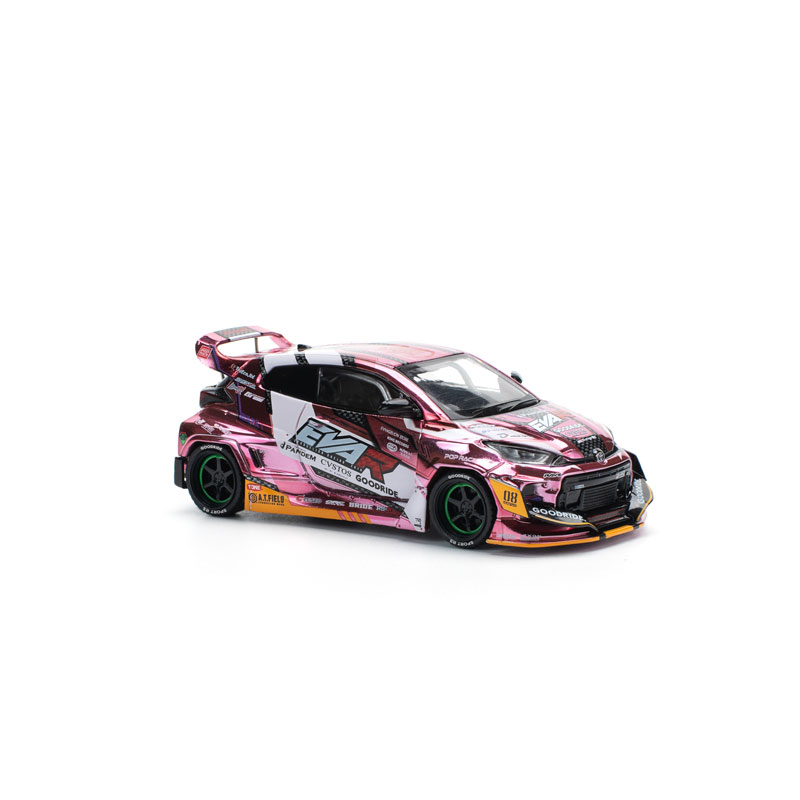 ●ドリフトサーキットで注目を集める「エヴァRT GRヤリス」シリーズに、「1/64 EVA RT PRODUCTION MODEL CUSTOM TYPE-08 GOODRIDE GR YARIS」が登場!今回はエヴァ8号機をモチーフにしたピンククローム塗装を採用。独自のリバリーデザインは、細部までこだわったタンポ印刷で再現され、エヴァンゲリオンファンやドリフト愛好家を魅了する一台です。