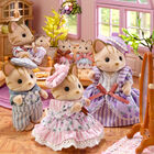 エレガントなお洋服を着たシマネコファミリーです。ぶどう柄がお揃いです。 お父さん、お母さん、女の子、男の子、みつごちゃんのセットです。 別売りの「シマネコの赤ちゃん-エレガントセット-」と一緒に遊ぶと家族がそろってもっと楽しめます。