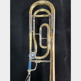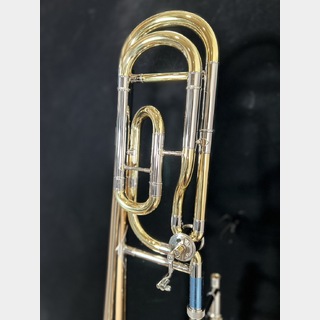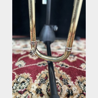 カスタムシリーズB♭/F管。ベルはゴールドブラス二枚取り直径214mm、スライド外管はイエローブラス、内管は洋白、ボアサイズは太管13.89mm、クリアラッカー仕上げ。