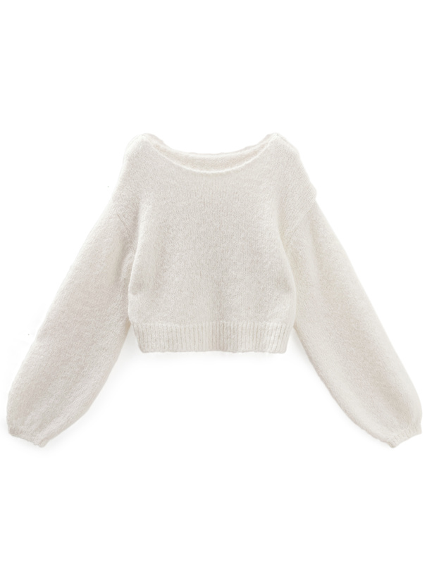 なめらかなモヘヤタッチニットで仕立てたコンパクトなトップス。