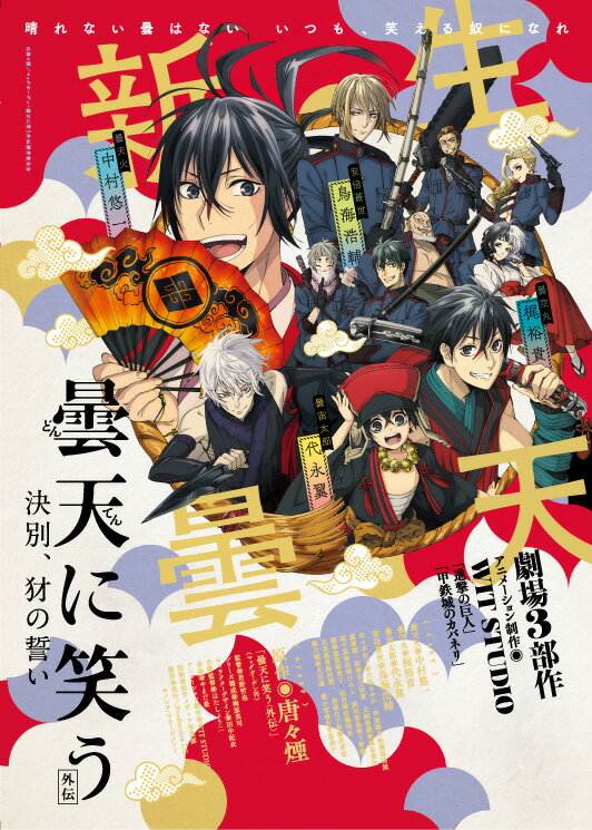 晴れない曇はない いつも、笑える奴になれ■WIT STUDIO最新作! 実写映画化も発表された、笑って泣ける大浪漫活劇!福士蒼汰主演で既に実写映画化も発表されている「曇天に笑う」に続いて、続編となる「外伝」が劇場三部作のアニメとして映像化!アニメーション制作は、「進撃の巨人」「甲鉄城のカバネリ」などハイクオリティな映像を生み出し続けるWIT STUDIOが担当。■セル特典として、原作者唐々煙による描き下ろしBOX、漫画付きブックレットを封入!原作ファンには垂涎のセル特典として、原作者唐々煙が本商品の為だけに描き下ろしたイラストを使用した三方背BOXだけでなく、オリジナルストーリーによる描き下ろし漫画付きブックレットの封入が決定!■豪華声優陣による夢の共演! 劇伴は新進気鋭の若手作家、やまだ豊が担当!声優ファンに絶大な人気を誇る豪華声優陣(中村悠一、梶裕貴、代永翼、鳥海浩輔、櫻井孝宏ほか)による夢の共演が実現!また、映画「デスノート Light up the NEW world」やTVアニメ「東京喰種」等の音楽を手掛けた、才能ある若手として非常に注目を集めているやまだ豊が劇伴を担当!<収録内容>【Disc】:DVD・画面サイズ:16:9・音声:日本語(オリジナル)リニアPCM 2.0ch ステレオ ▽音声特典・ドラマCD 「天火、旅立ちの日に」(中村悠一、鳥海浩輔、大原さやか)・キャストトーク (中村悠一、鳥海浩輔)※収録内容は変更となる場合がございます。