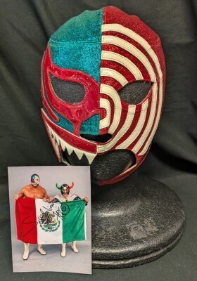 プロレスマスク アンヘルアステカ製【ミル・マスカラス(緑ラメ×赤・黒フチ)】タグなし