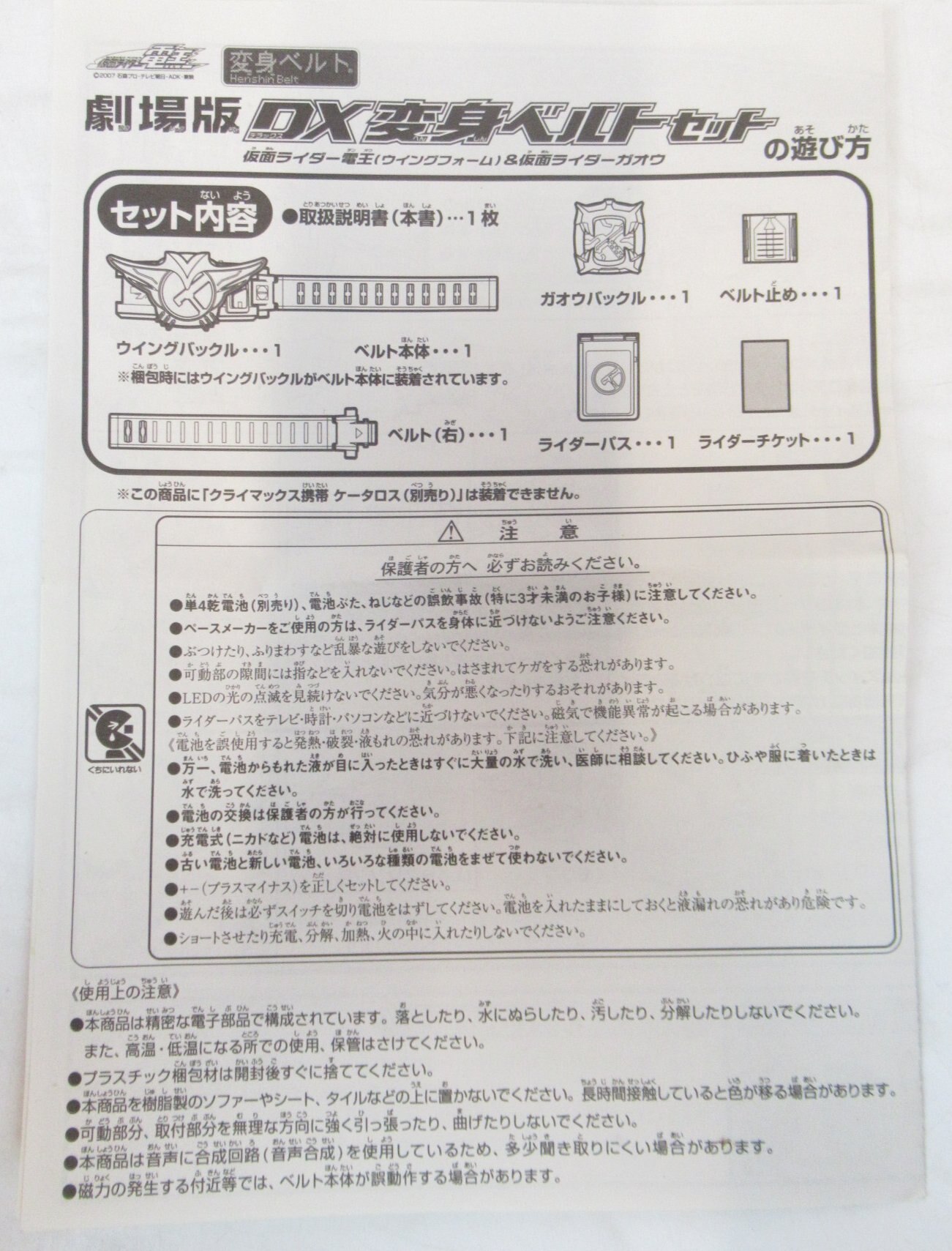 商品状態: 開封/使用/箱イタミ大/ガオウバックル欠/ライダーチケット欠