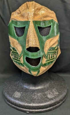 プロレスマスク プエブラ製【ミル・マスカラス(金ラメ×緑・赤フチ)】 タグなし