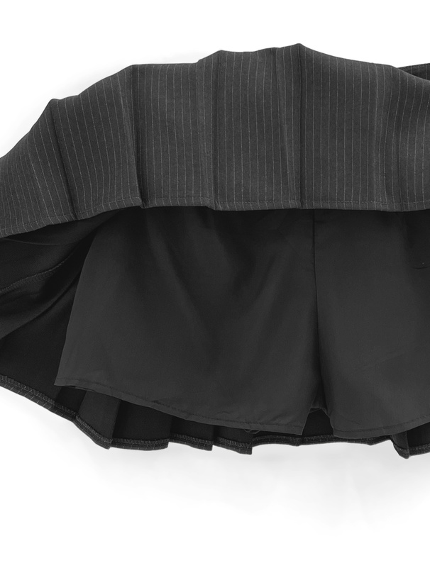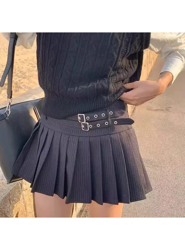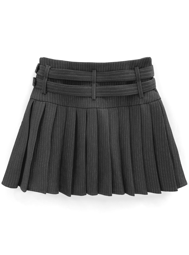 GRLインパン裏地・ベルト付きストライプ柄プリーツミニスカート[at2439]