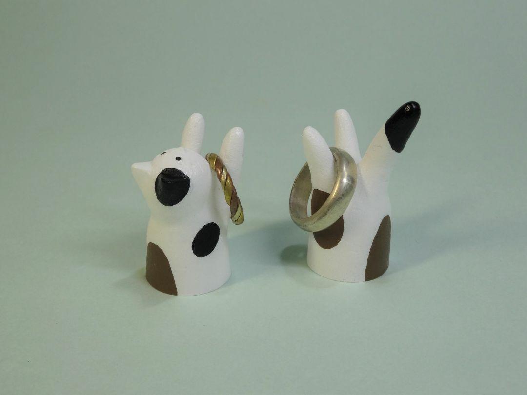 リングホルダー 指輪 リングスタンド ホワイト ネコ 白 指輪置き おすわり